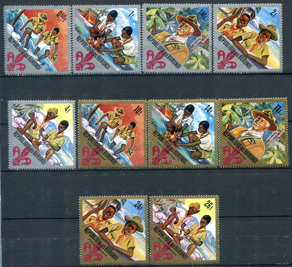 Бурунди - 1967г. - 60 лет скаутскому движению, 12-я международная встреча скаутов - 10 марок - полная серия, MLH, MNH с отпечатками на клее [Mi 349 A - 358 A]. #3-Bu-75-C-1