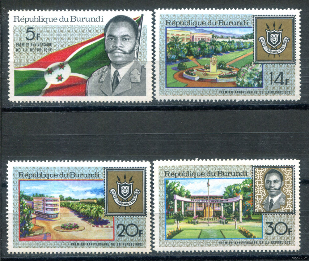 ![Бурунди - 1967г. - годовщина Республики - 4 марки - полная серия, MNH, 2 марки с лёгким пожелтением клея [Mi 378 A - 381 A]. #3-Bu-Z-1-22](https://s2-lot.aystatic.by/550x510/712/822/5039/5039822712_0.jpg)