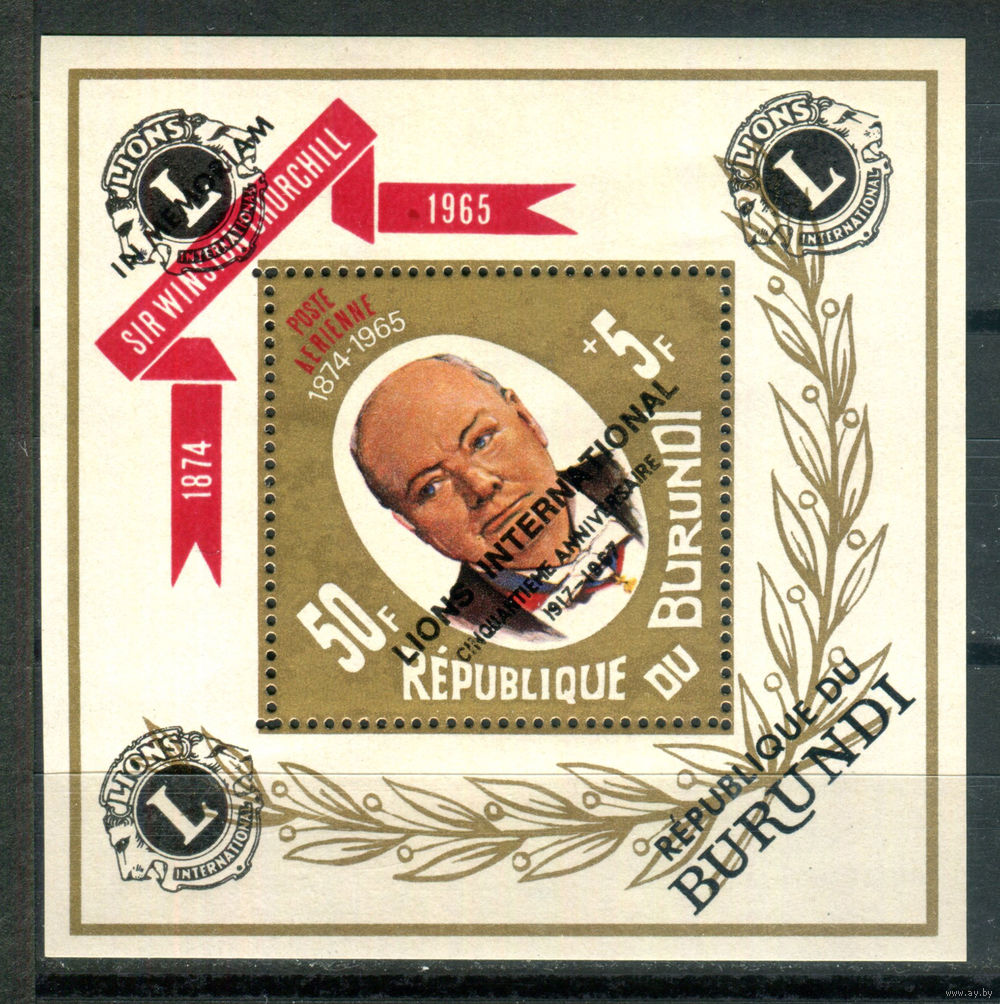 Бурунди - 1967г. - Уинстон Черчилль, архитектура, надпечатка - 1 блок - полная серия, MNH, есть маленькая точка-пятнышко на лицевой стороне [Mi bl. 22 A]. #3-Bu-Z-2-23