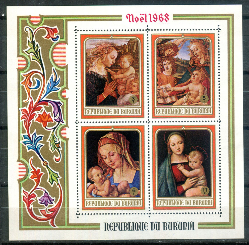 Бурунди - 1968г. - Рождество. Картины с Мадонной - 1 блок - полная серия, MNH [Mi bl. 30 A]. #3-Bu-Z-2-24
