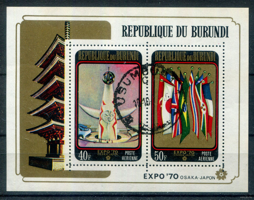 Бурунди - 1970г. - Всемирная выставка ЭКСПО 70 в Осаке - 1 блок - полная серия, гашёный с жёлтыми полосами на клее [Mi bl. 42 A]. #3-Bu-77-KS-1