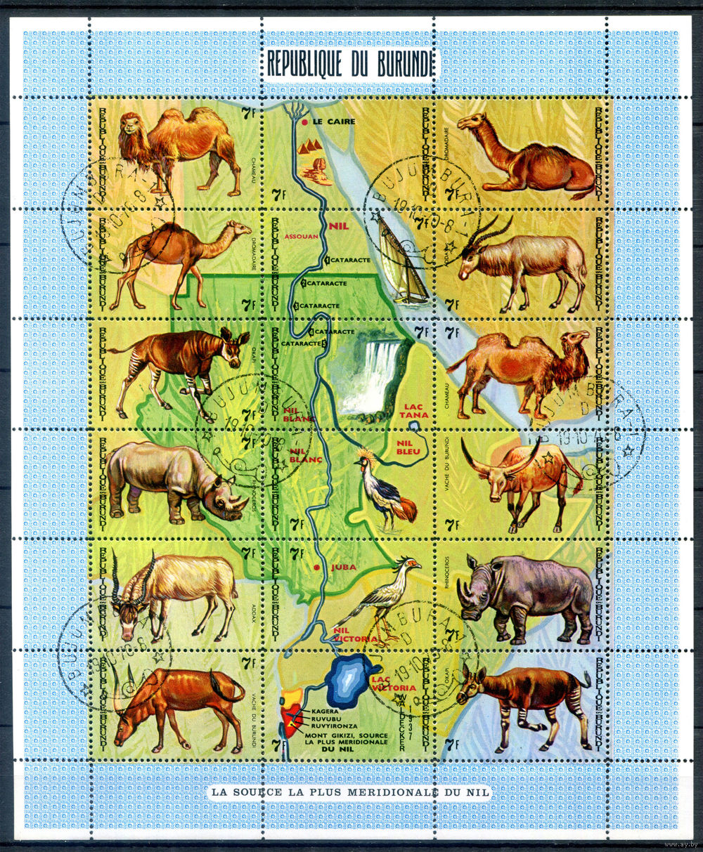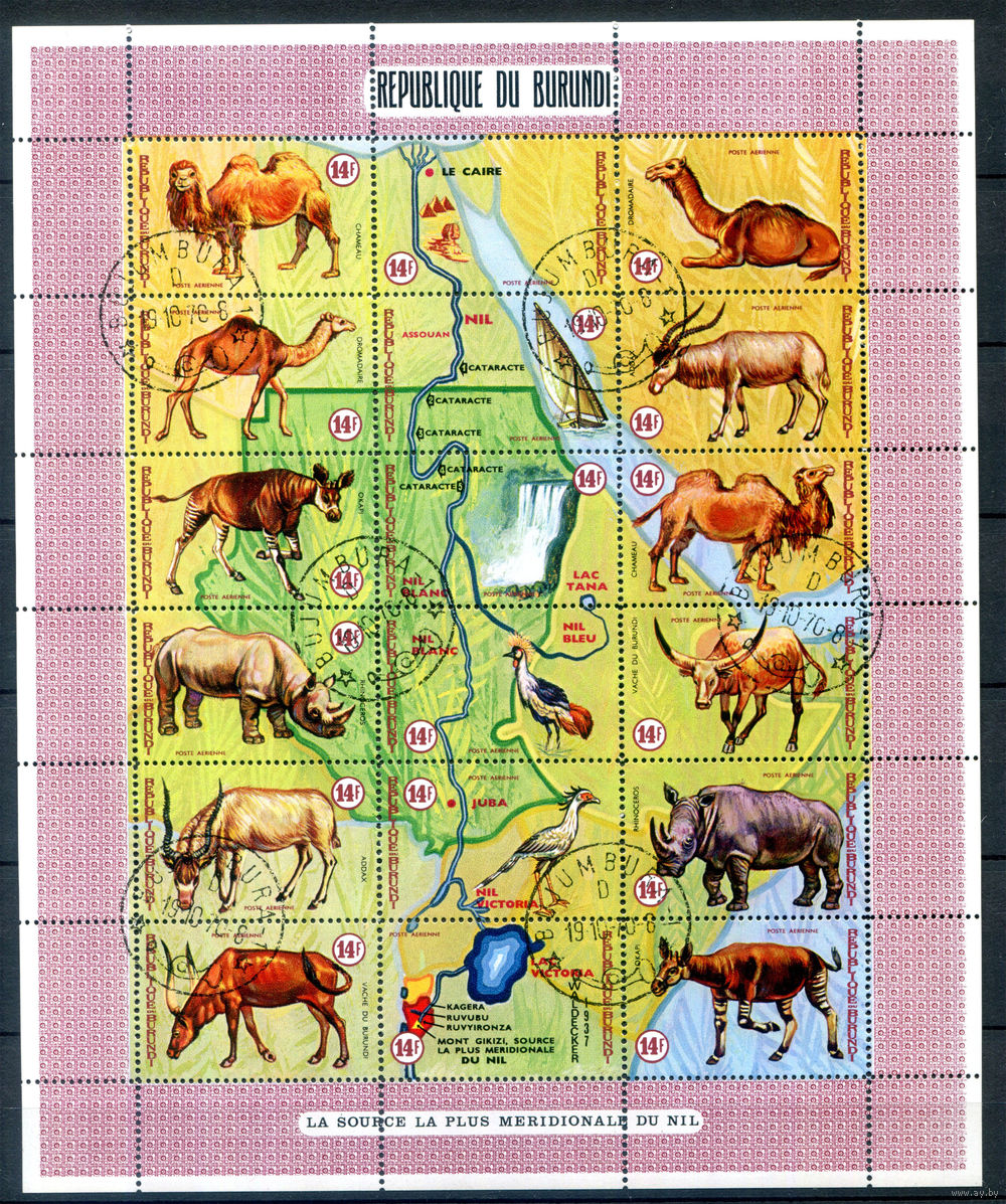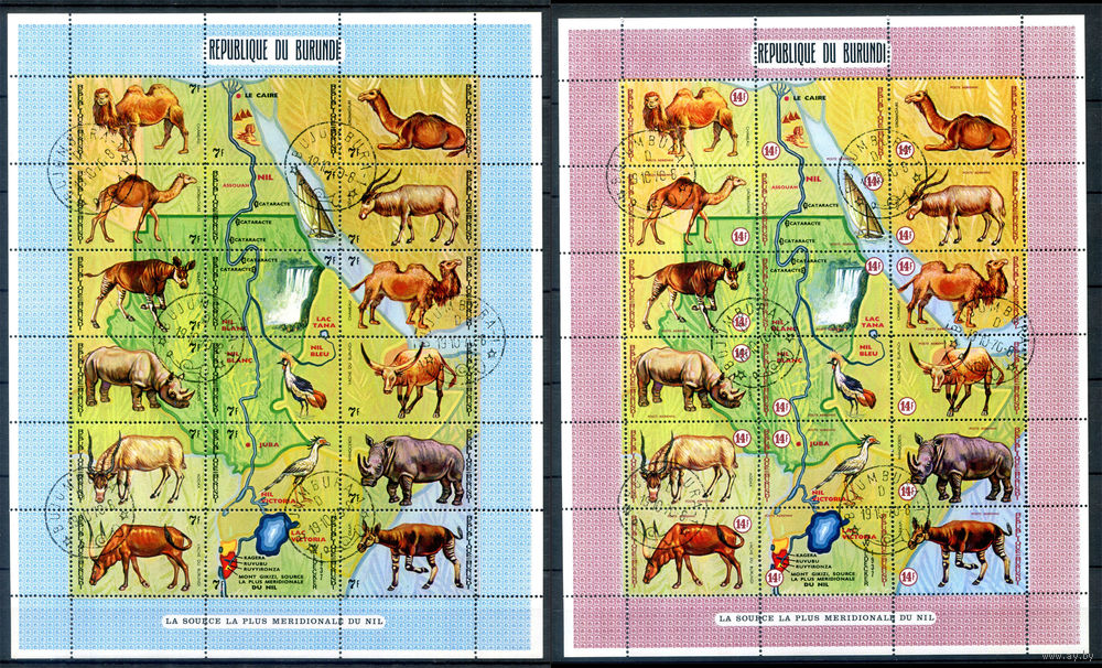 Бурунди - 1970г. - животные и карта - 2 листа - полная серия, гашёные с клеем [Mi 585 A - 620 A]. #3-Bu-73-B-1