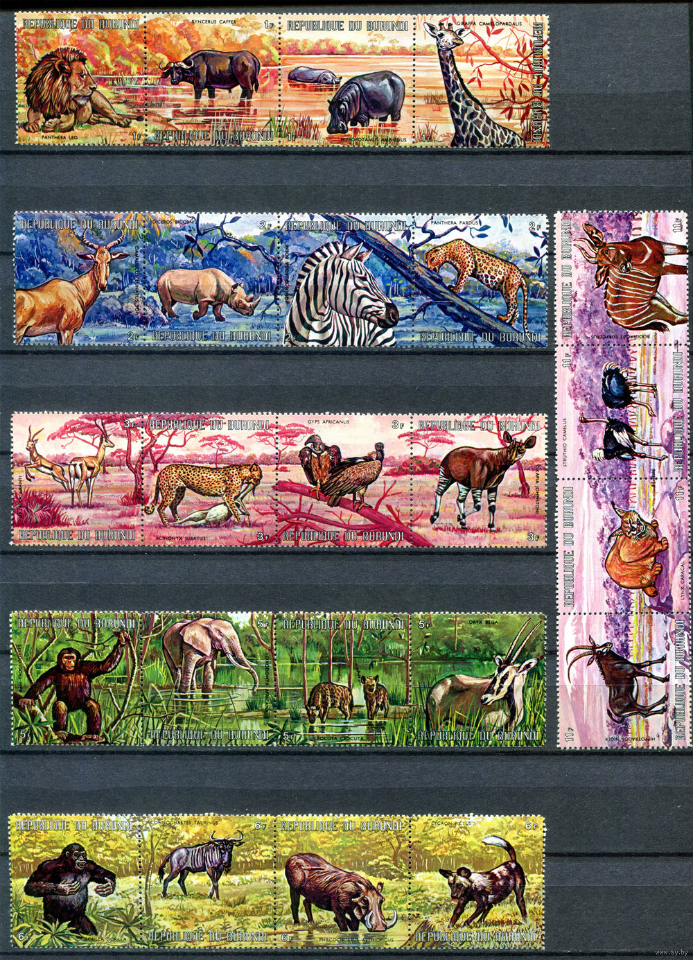 ![Бурунди - 1971г. - африканские животные - 24 марки - 6 сцепок - полная серия, MNH, 1 сцепка с полосой на клее [Mi 702-725]. #3-Bu-Z-1-24](https://s4-lot.aystatic.by/550x510/227/924/5039/5039924227_0.jpg)
