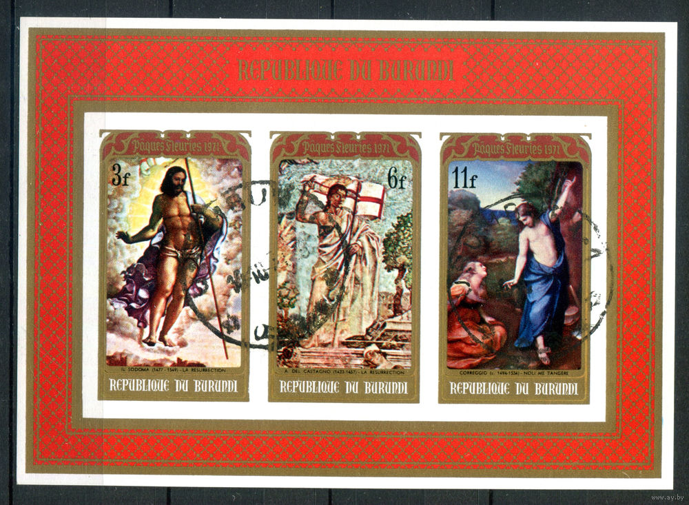 Бурунди - 1971г. - Пасха. Картины - 1 блок - полная серия, гашёный с клеем [Mi 48 B]. #3-Bu-83-C-2