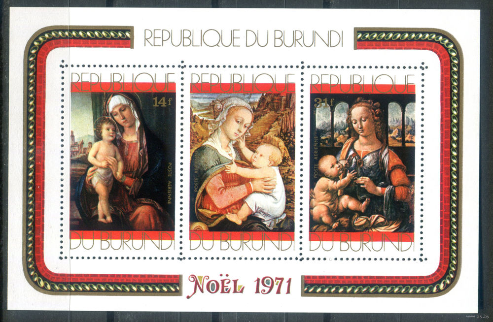 Бурунди - 1971г. - Рождество. Картины - 1 блок - полная серия, MNH [Mi bl. 53 A]. #3-Bu-Z-2-28