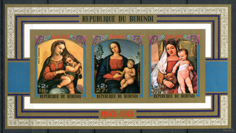 Бурунди - 1973г. - Рождество. Картины - 1 блок - полная серия, MNH [Mi bl. 76 B]. #3-Bu-Z-2-30