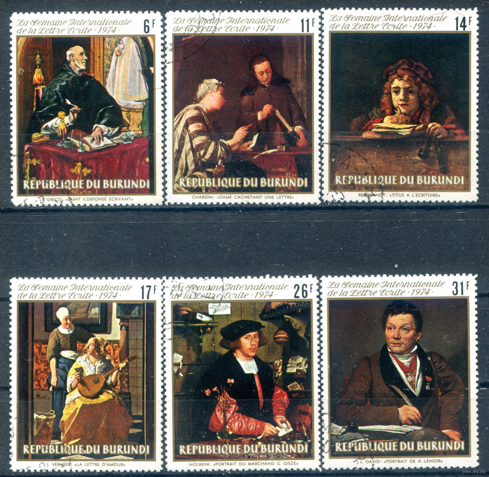 Бурунди - 1974г. - картины, международная неделя письма - 6 марок - полная серия, гашёные с клеем [Mi 1109-1114]. #3-Bu-87-KB-1