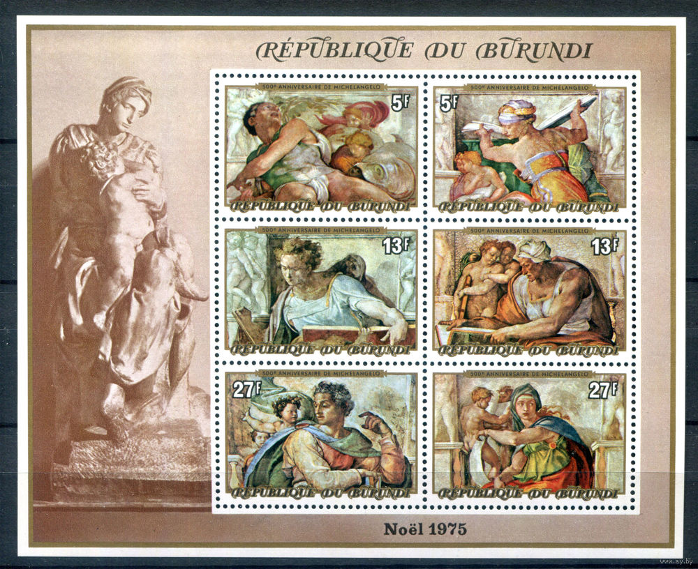 ![Бурунди - 1975г. - Рождество. 500 лет с дня рождения Микеланджело, фрески Сикстинской капеллы - 1 блок - полная серия, MNH [Mi bl. 86 A]. #3-Bu-Z-2-31](https://s5-lot.aystatic.by/550x510/519/215/5040/5040215519_0.jpg)