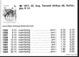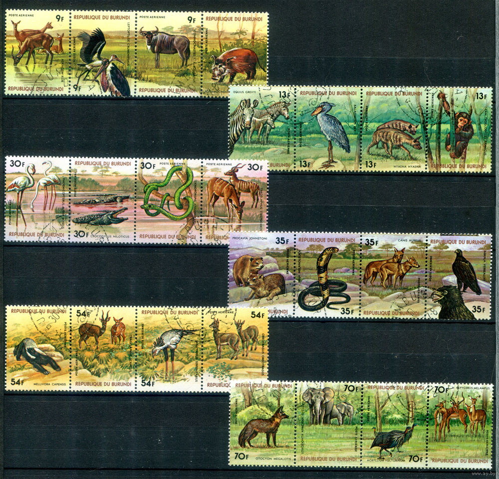 Бурунди - 1977г. - животные Африки. Авиапочта - 24 марки - 6 сцепок - полная серия, гашёные с клеем, 3 марки с отпечатками на клее [Mi 1355-1378]. #3-Bu-79-B-2