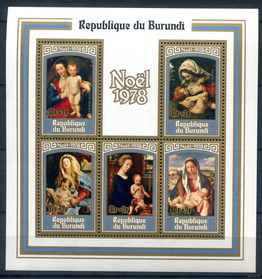 ![Бурунди - 1979г. - Рождество. Картины - 1 блок - полная серия, MNH [Mi bl. 108 A]. #3-Bu-Z-2-33](https://s3-lot.aystatic.by/550x510/844/253/5040/5040253844_0.jpg)