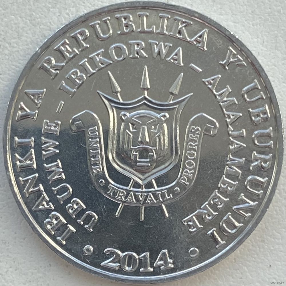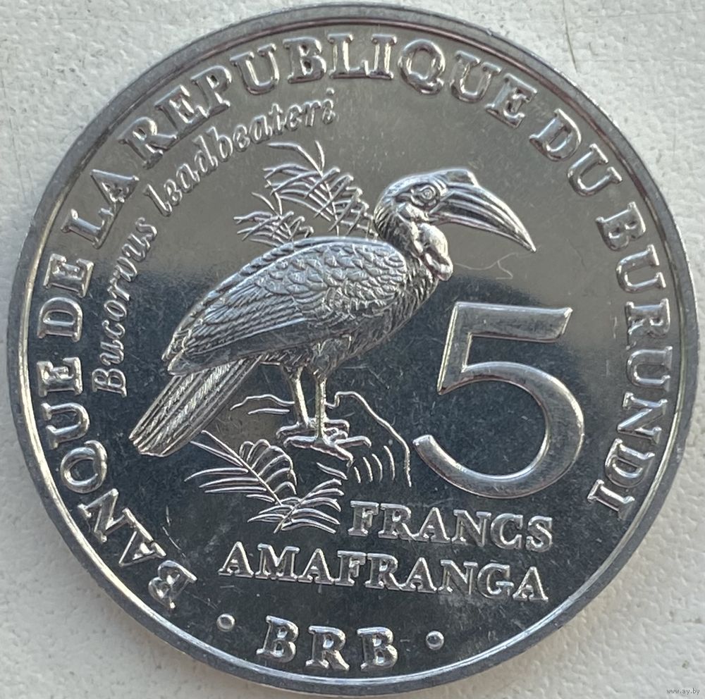 Бурунди 5 франков 2014 г. Птицы. Кафрский рогатый ворон