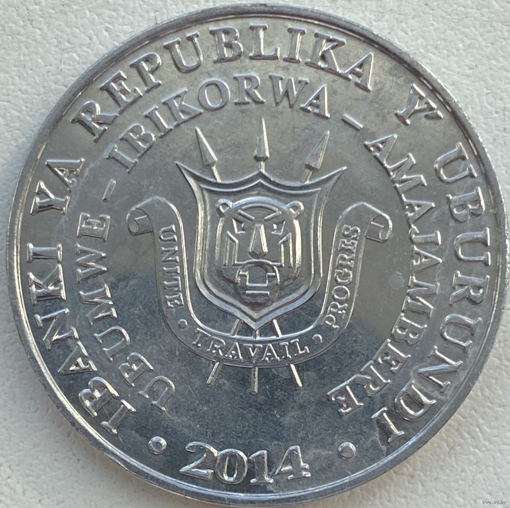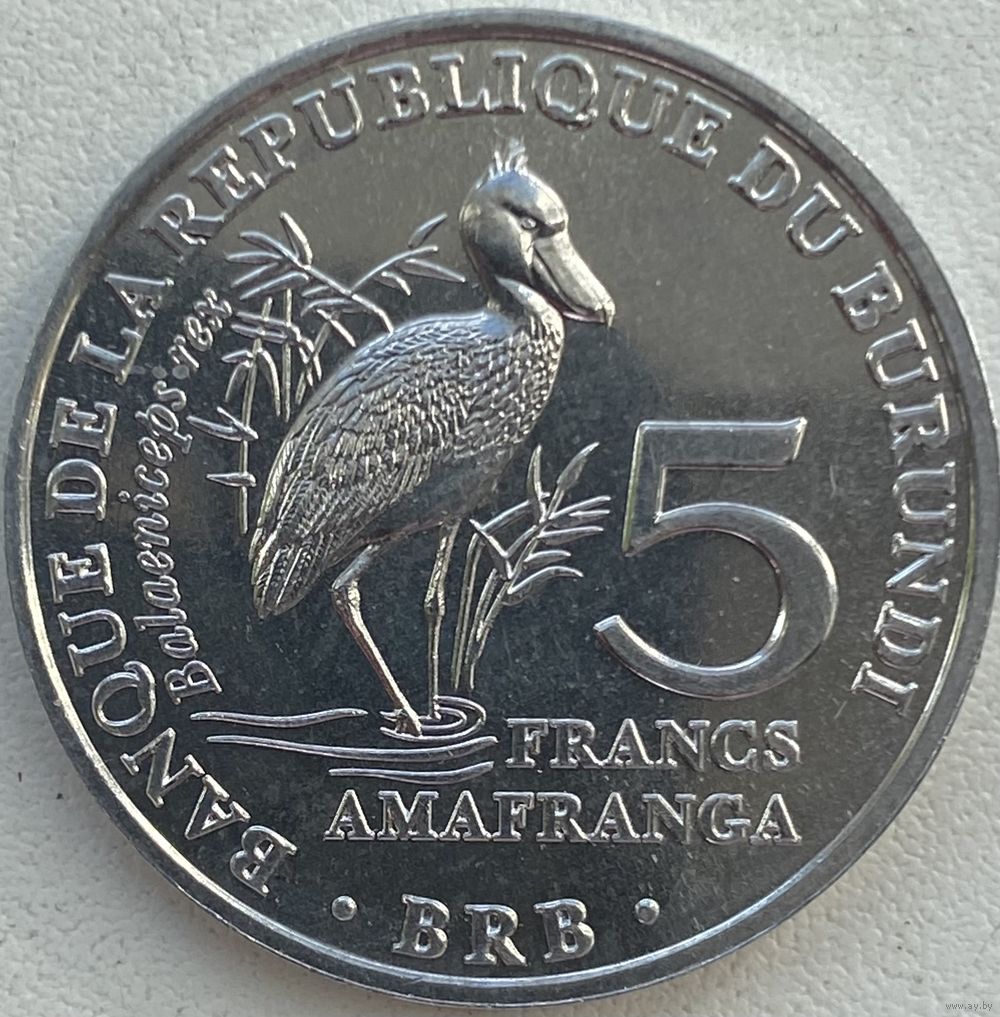 Бурунди 5 франков 2014 г. Птицы. Королевская цапля