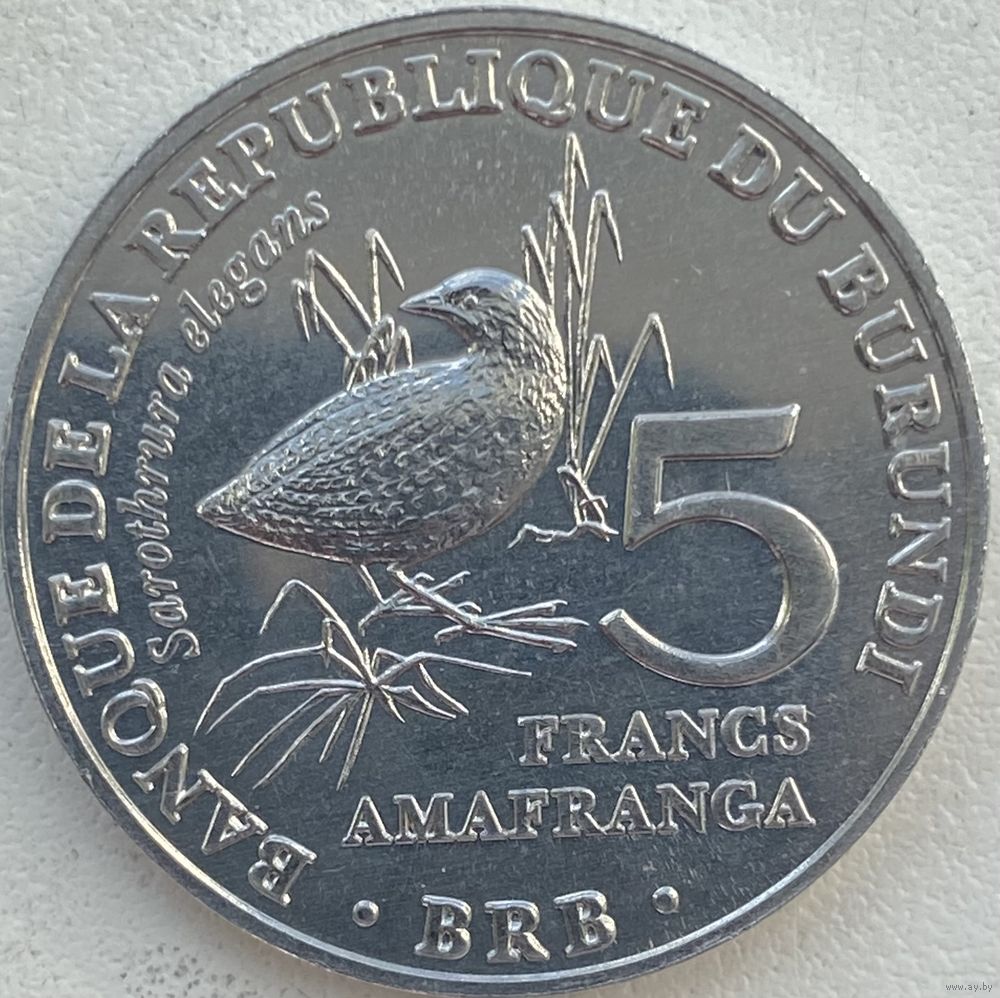 Бурунди 5 франков 2014 г. Птицы. Пёстрый пушистый погоныш