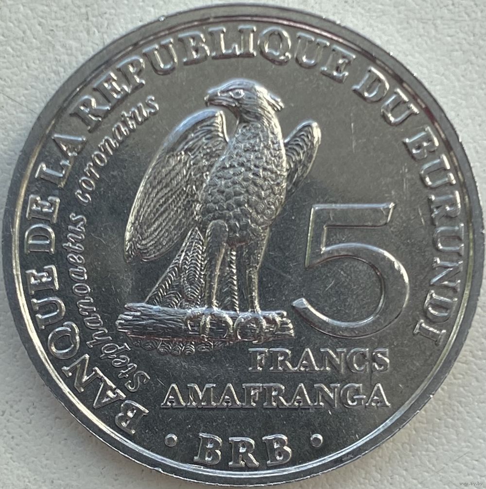 Бурунди 5 франков 2014 г. Птицы. Венценосный орёл