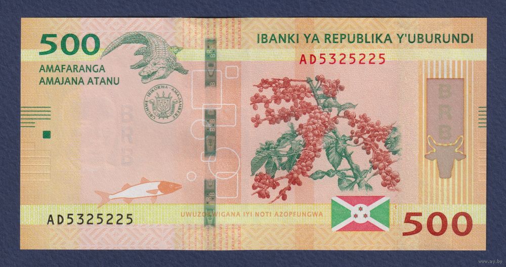 Бурунди, 500 франков 2018, P-50 (AF, крокодил, кофейная ветвь), UNC
