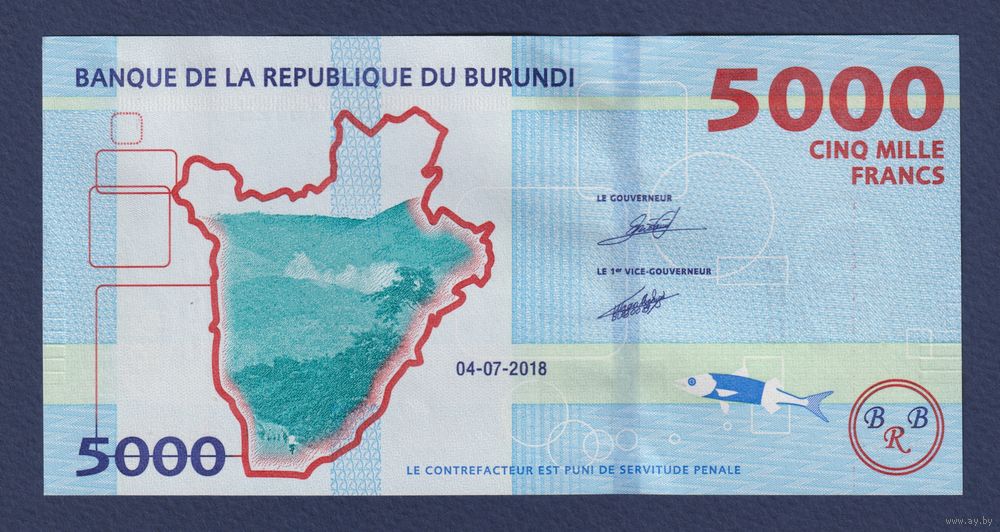 Бурунди, 5000 франков 2018, P-53b (DK, национальные герои, карта Бурунди), UNC