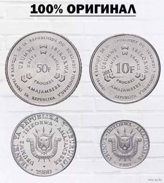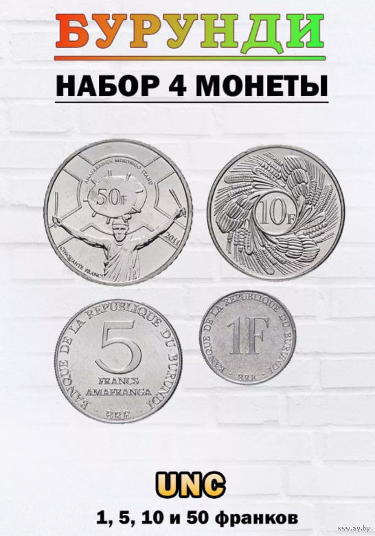 Бурунди набор монет 1, 5, 10, 50 франков, UNC. Орел. Герб Бурунди. Барабанщик. Сторгуй за свою цену, предложи обмен!