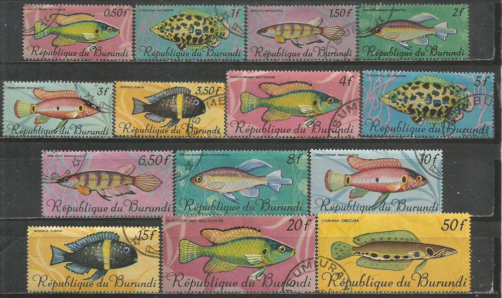 Бурунди. Рыбы. 1967г. 14 марок.