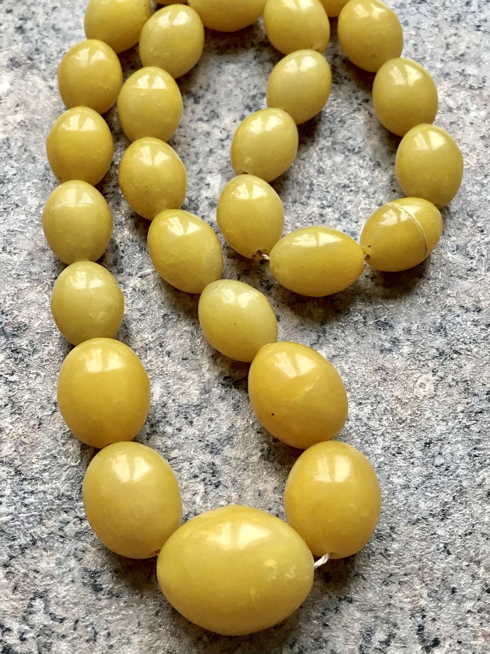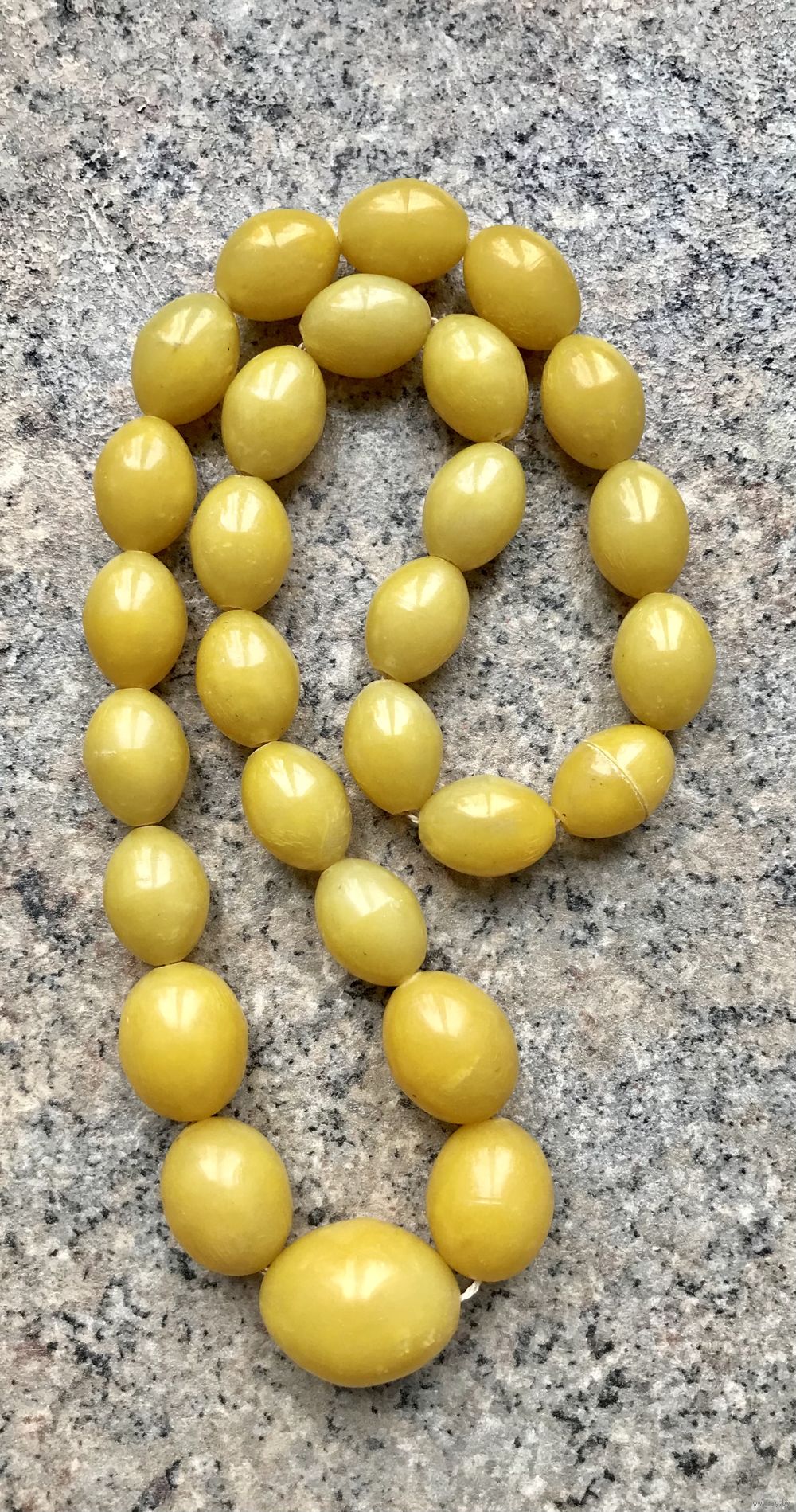 Винтажные бусы из пластика под янтарь. Длина 60см., размер бусин от 2х1,5см. до 2,7х2,2см. Немного растянута нить.