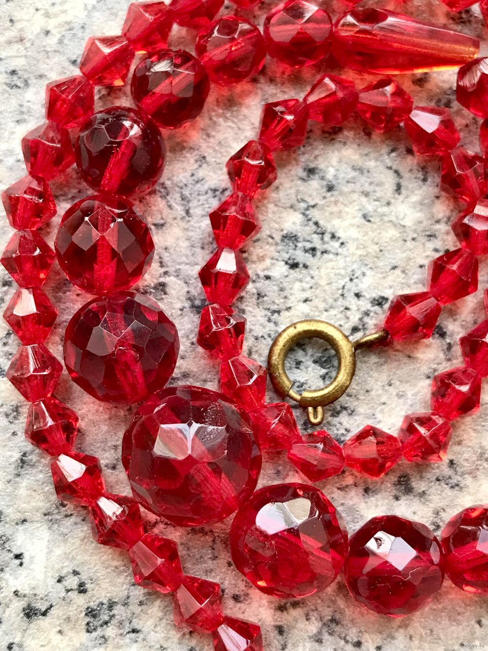 Винтажные бусы из красного стекла. На некоторых бусинах имеются незначительные скольчики. Длина 44см.