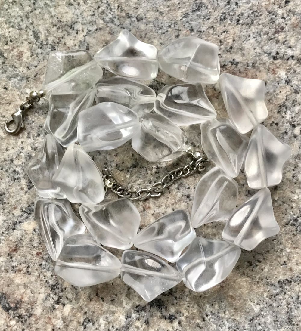 Крупные, эффектные бусы из прозрачного пластика. Длина 50см.+7см. доп.цепочка. Размер бусин 2,5х1,8см.