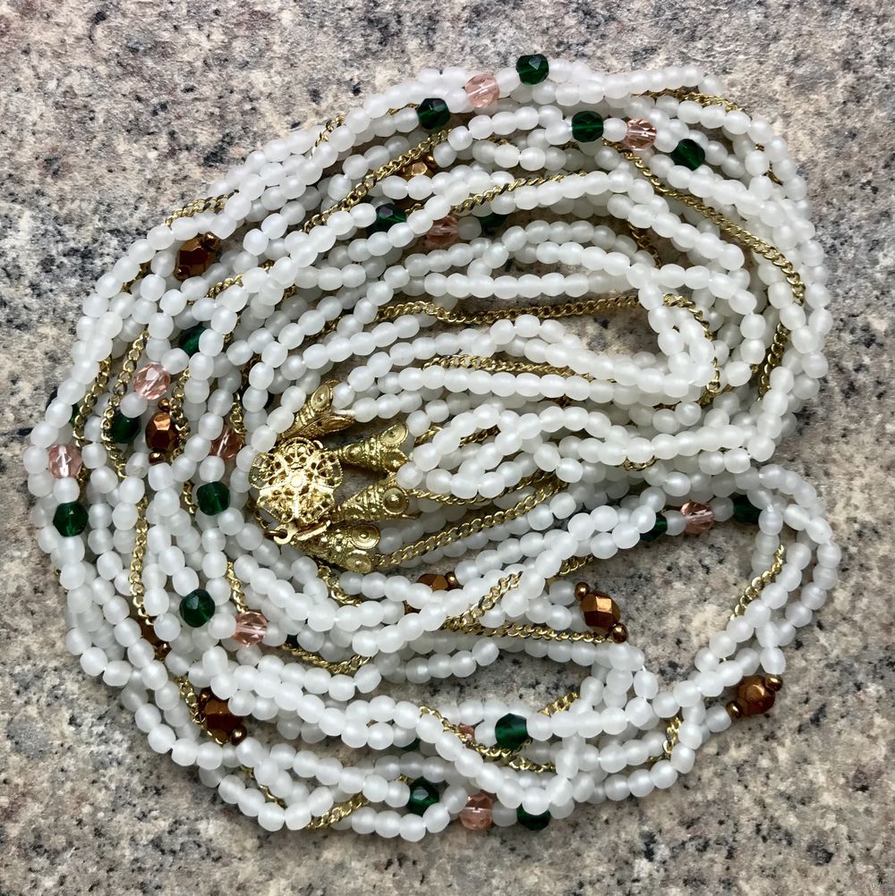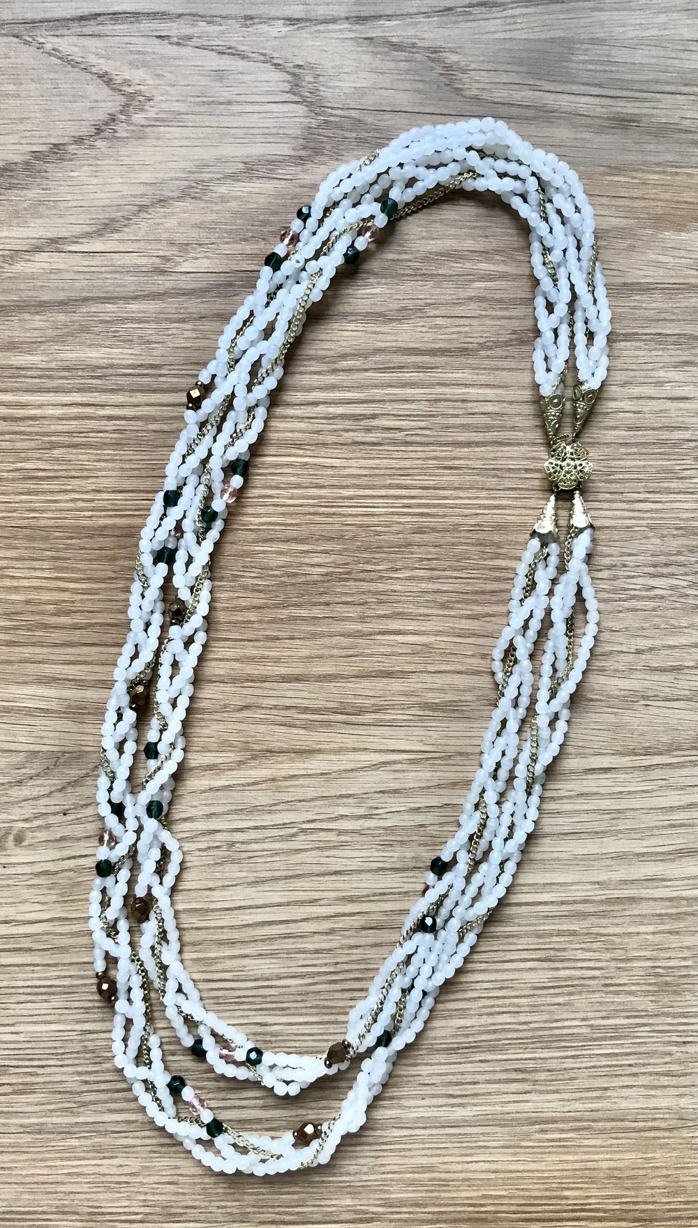 Винтажные чешские бусы. Стекло и цепи из металла золотого тона. Длина верхнего ряда 64см., нижнего 70см. Состояние хорошее.
