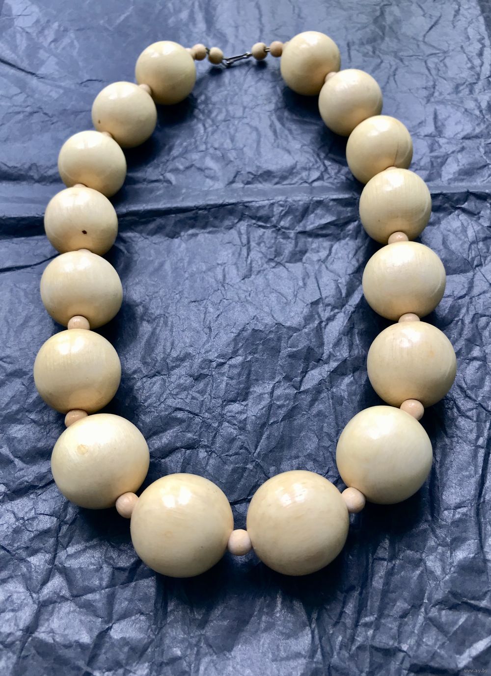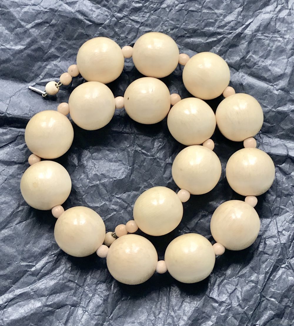 Крупные винтажные бусы из дерева. Диаметр шариков 2,5см., длина 50см. Покрыты бесцветным лаком. Состояние хорошее.