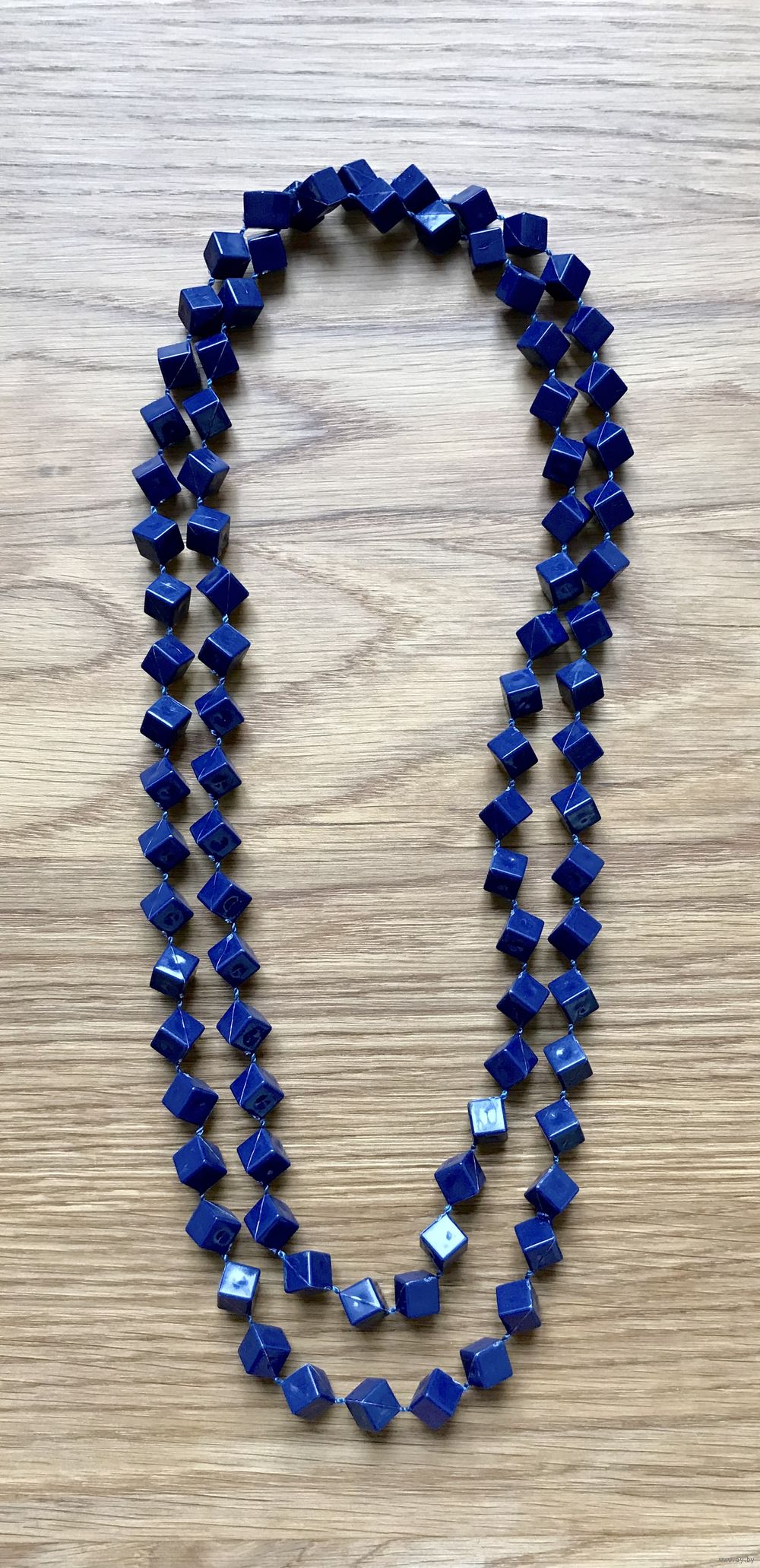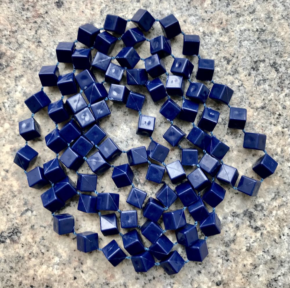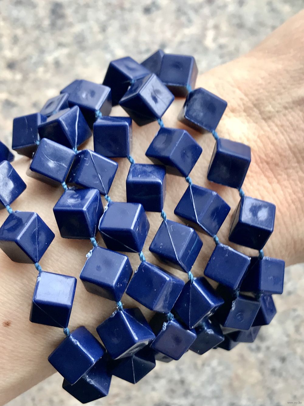 Бусы из пластиковых бусин в форме кубиков. Длина 120см. Неразъемные. Кубики размером 0,7х0,7х0,7см. Состояние хорошее.