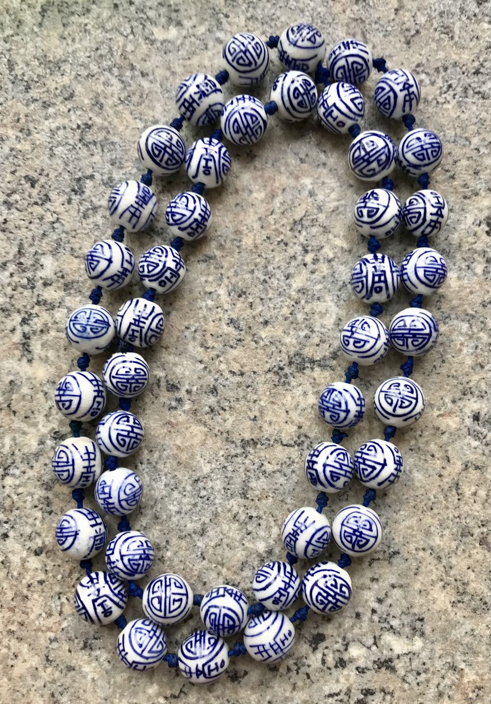 Крупные винтажные китайские бусы из фарфора. Ручная роспись. Длина 80 см., диаметр бусины ~1,4см., неразъемные. На некоторых бусинах имеется кракелюр. Общее состояние хорошее.