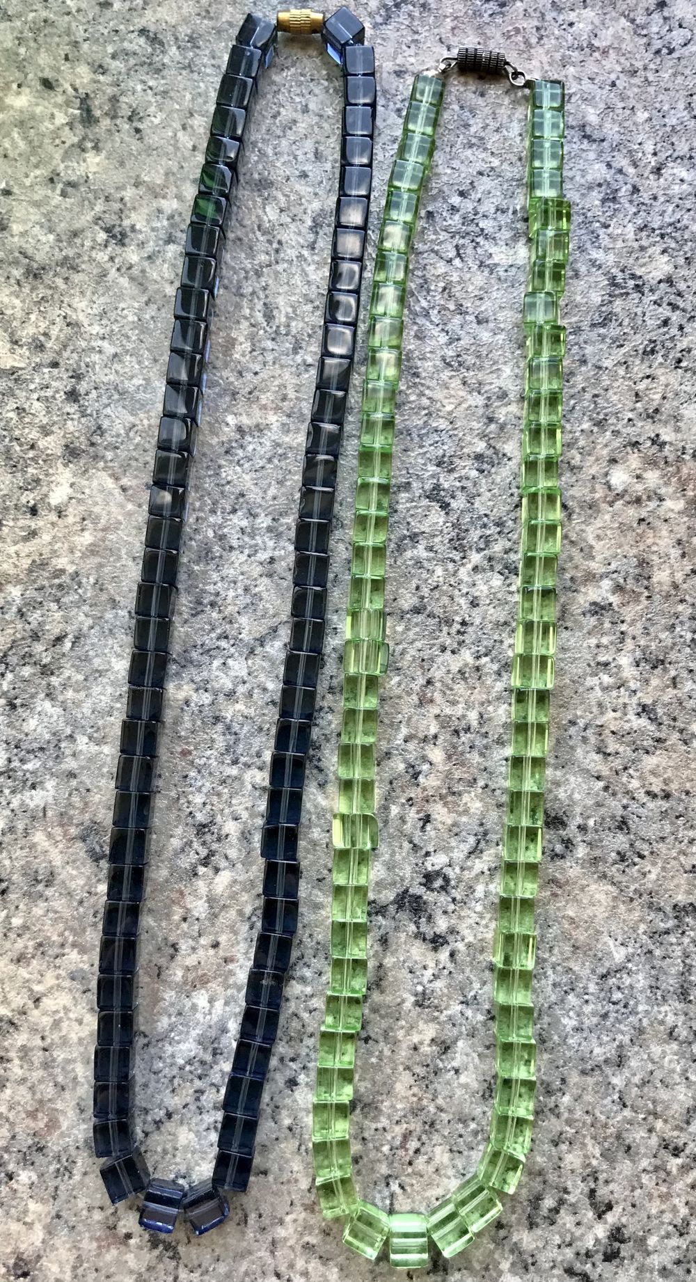 Винтажные бусы из стекла. Длина зелёных 46см., размер бусин 0,6х0,6см. Длина синих 45см., размер бусин 0,5х0,5см. Нанизаны на леску, лучше перенизать на более эластичную нить. Цена указана за одни.