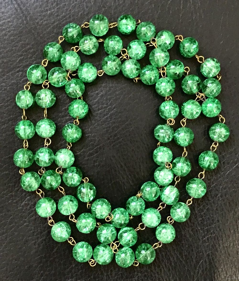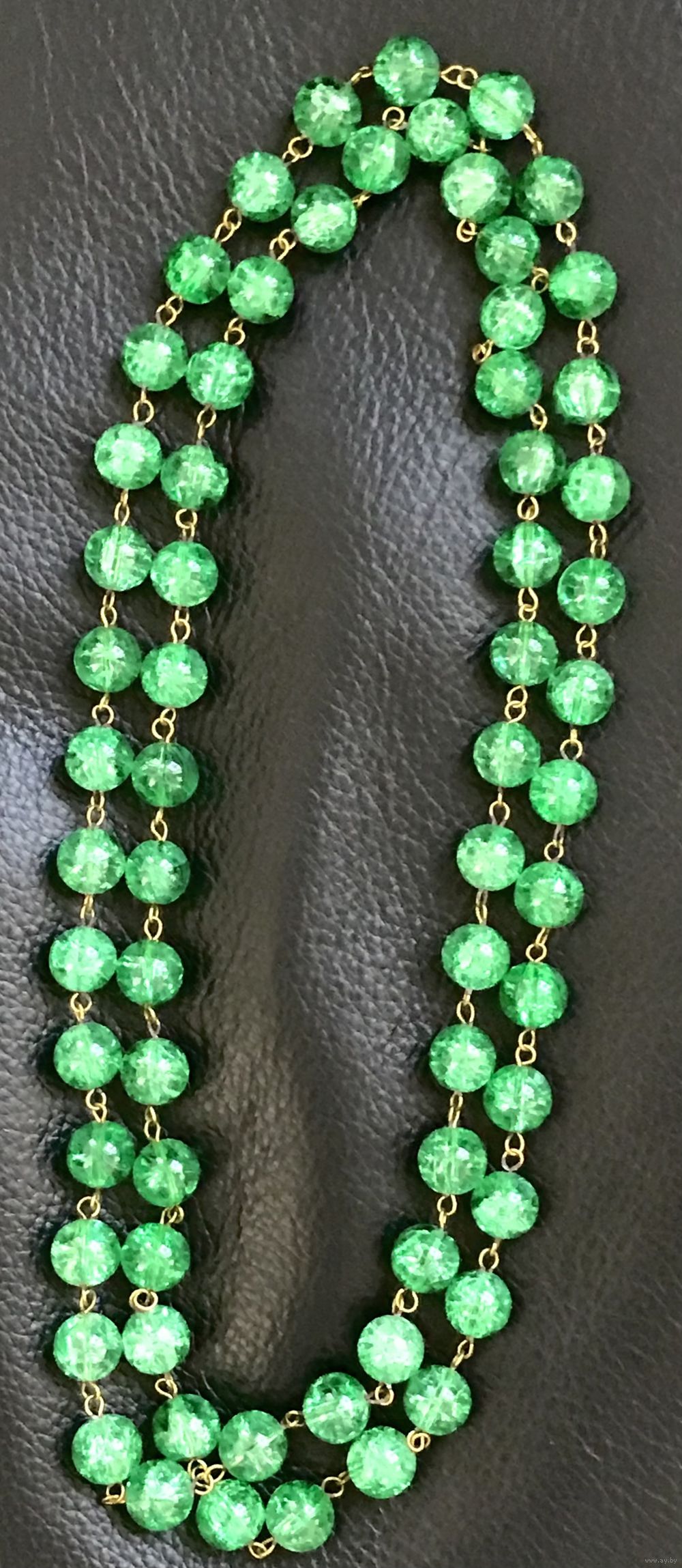 Винтажные бусы из стеклянных бусин сделанных в технике кракле. Бусины между собой соединены пинами из латуни. Длина 120 см., неразъемные. Состояние хорошее.