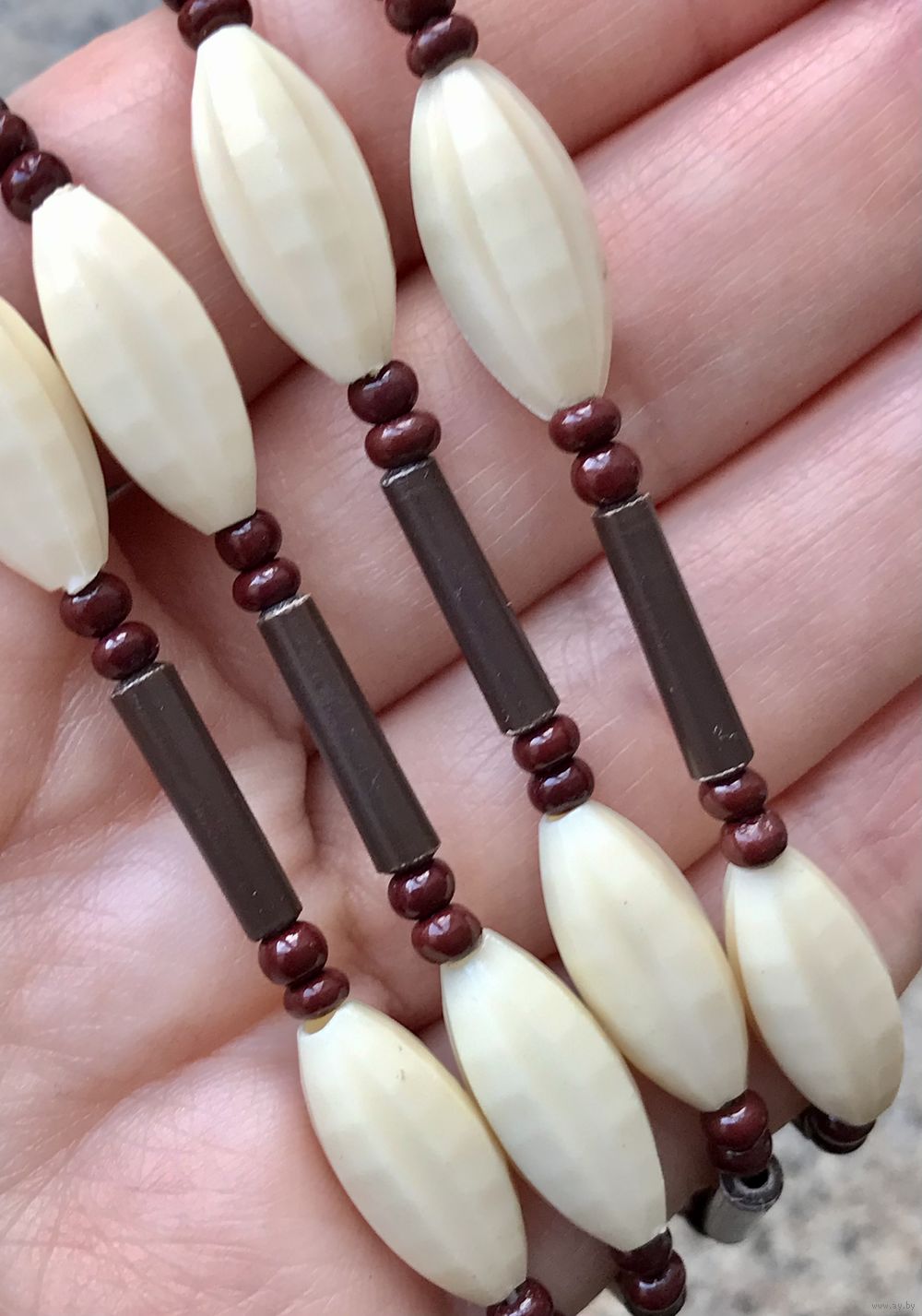 3.Винтажные бусы из пластика. Длина 47см., размер бусины 0,8х0,4см. Состояние хорошее.