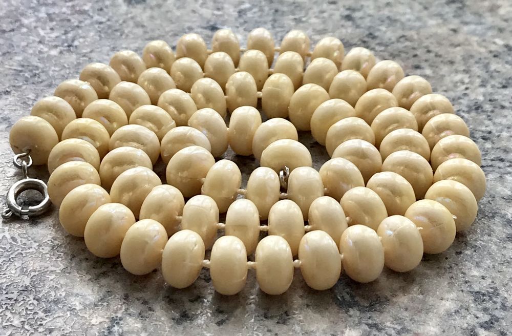 2.Винтажные бусы из пластика. Длина 80см. Размер бусины молочного цвета 1,6х0,7см. Состояние хорошее.