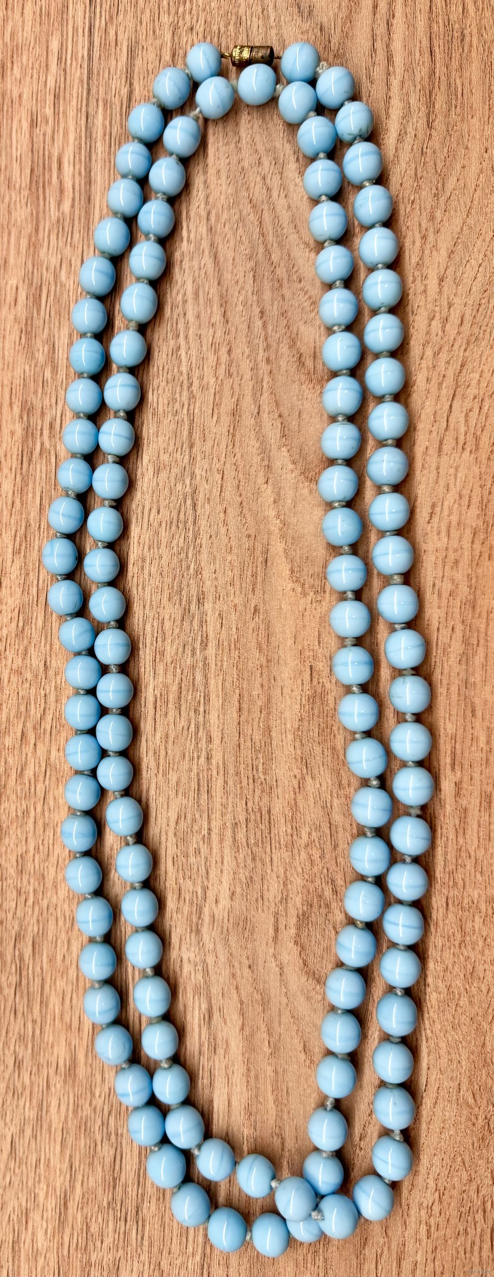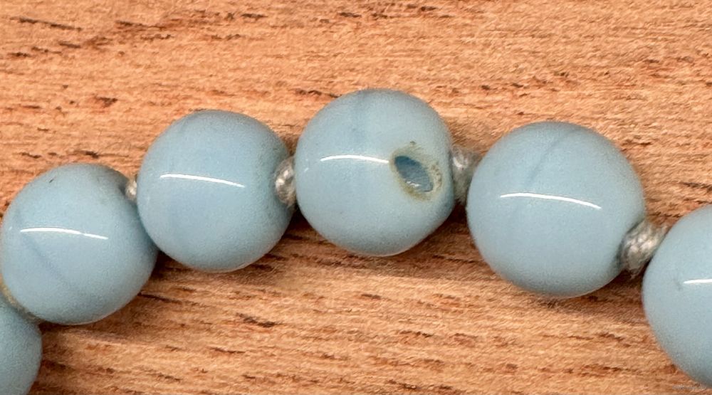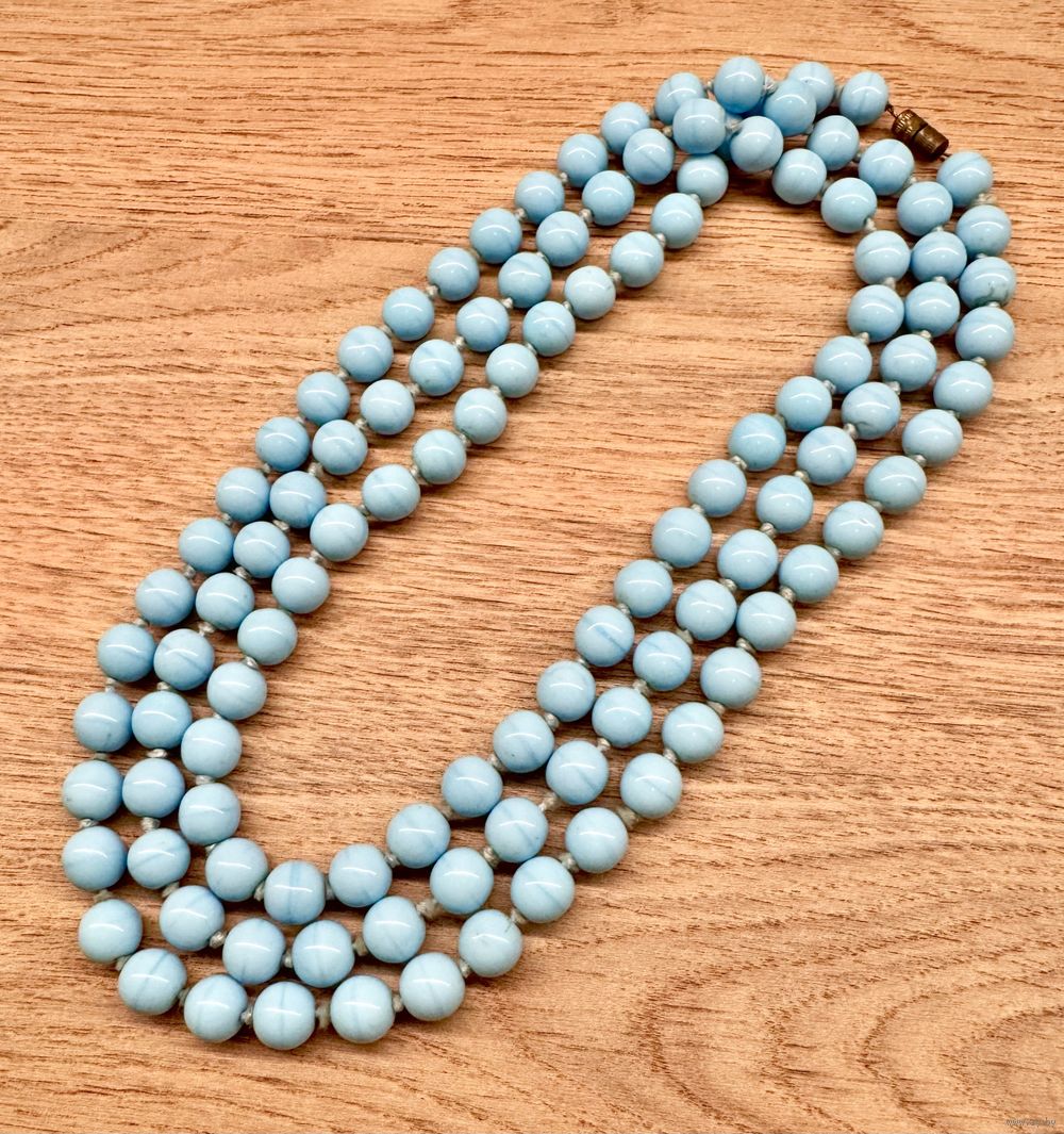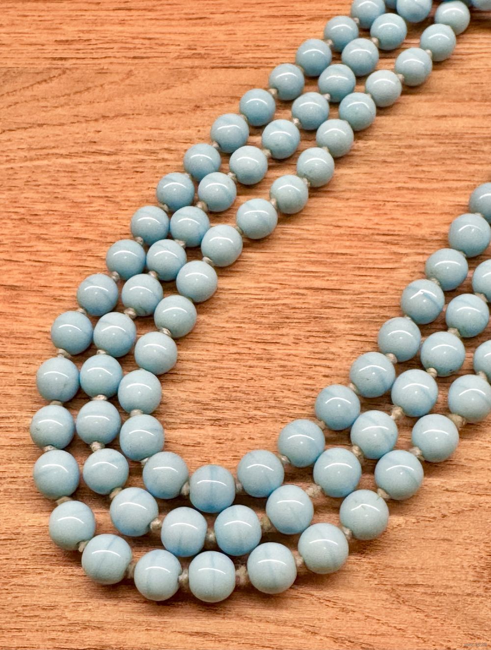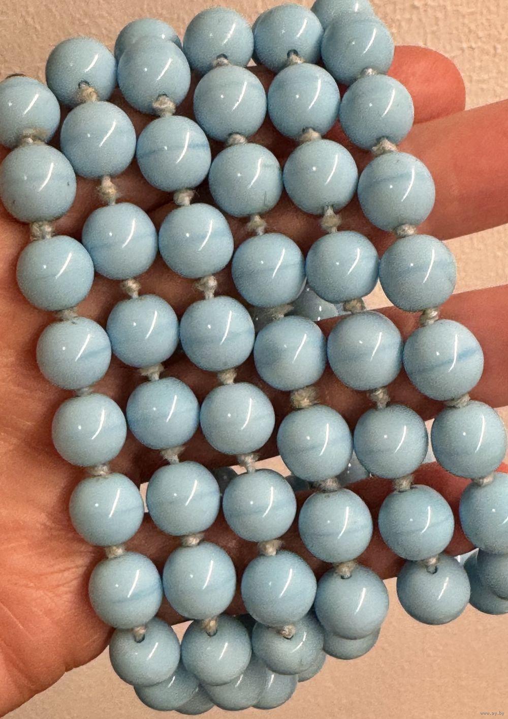 Длинные винтажные бусы из стекла с узелками между каждой бусиной. Длина 130см., диаметр бусины 0,9см. На одной бусине есть небольшая дырочка. Общее состояние хорошее.