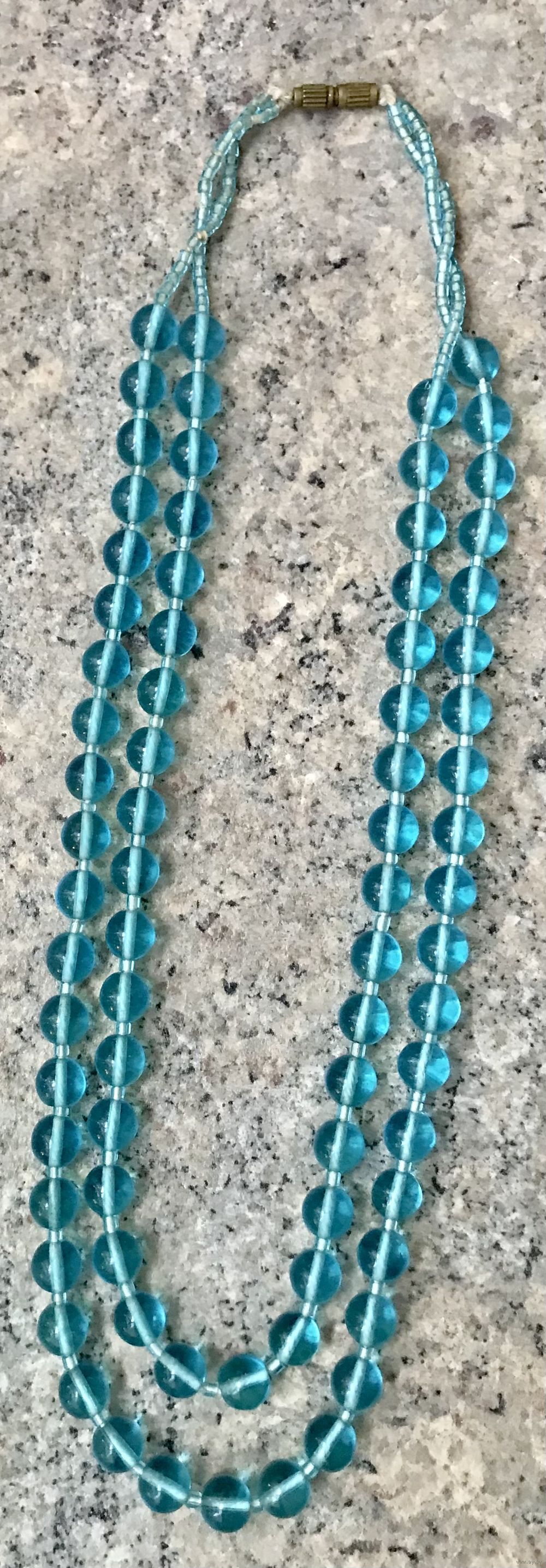 Винтажные двухрядные бусы из стекла и бисера. Длина верхнего ряда 46см., нижнего 48см., диаметр бусин 0,7см. Состояние хорошее.