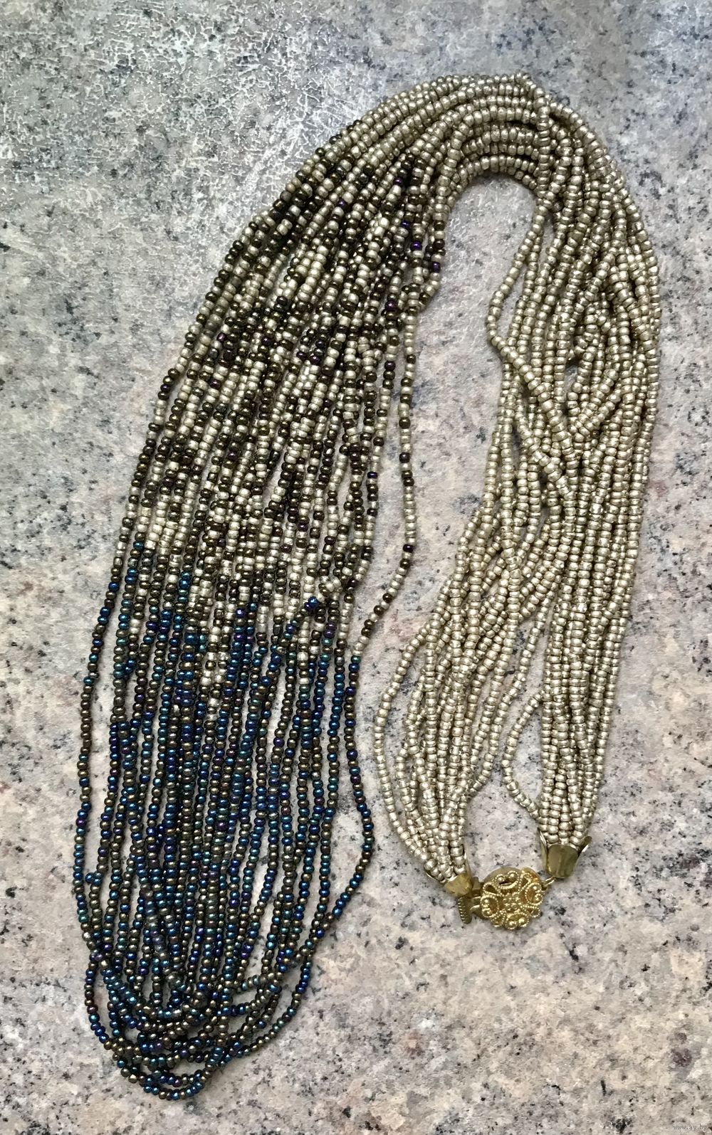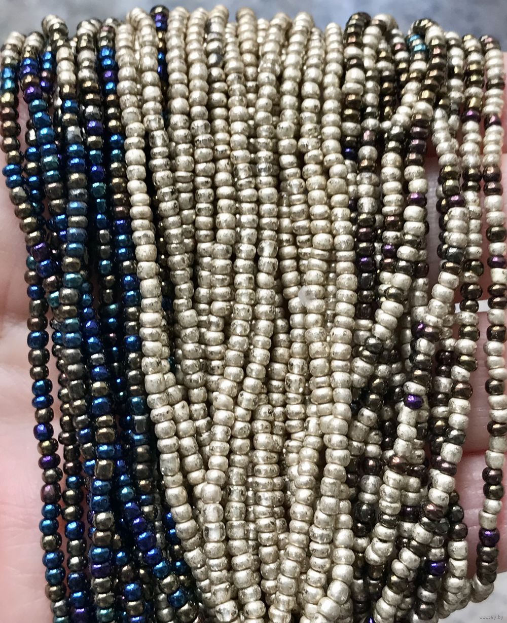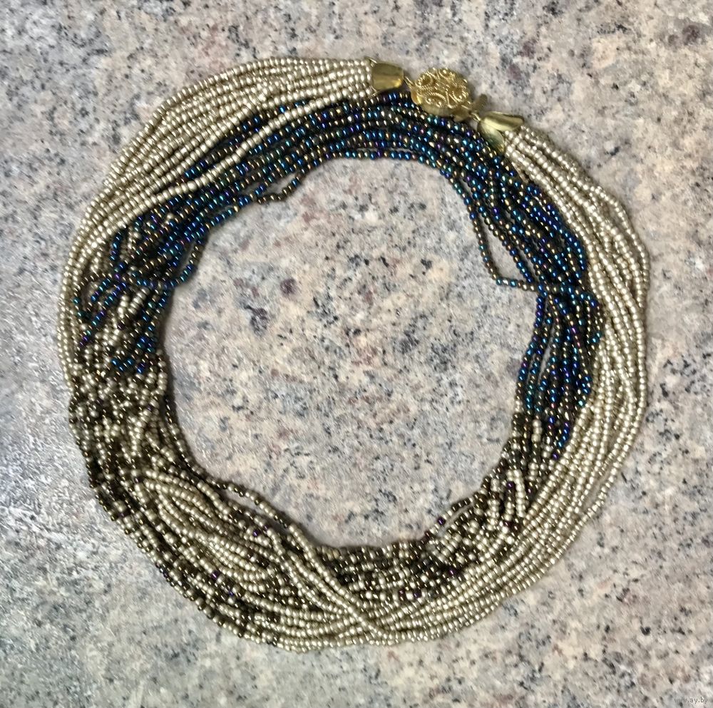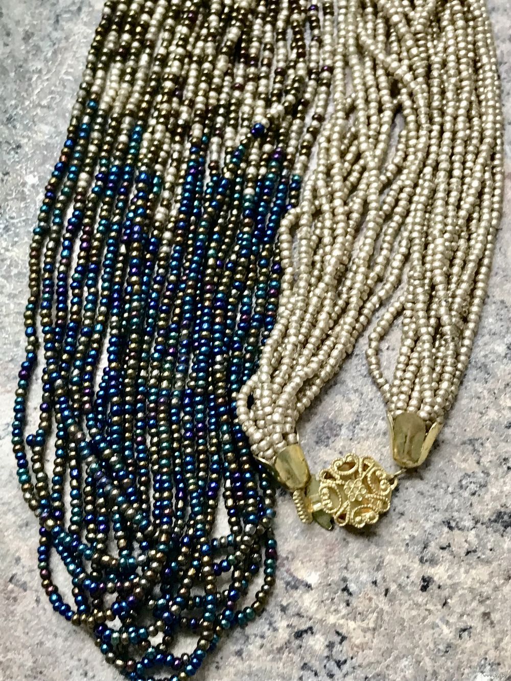 Винтажные 11 рядные бусы из чешского бисера нескольких цветов. Длина 80 см. Состояние хорошее.