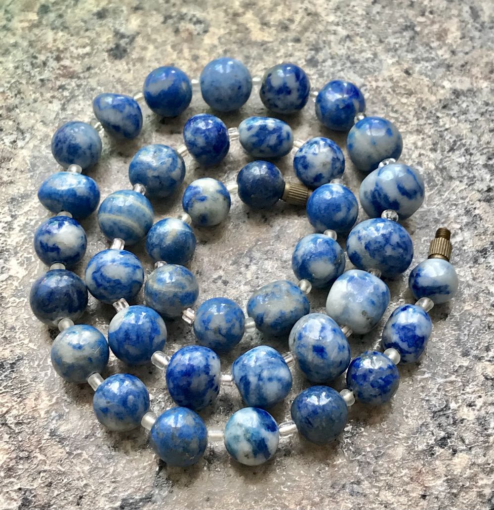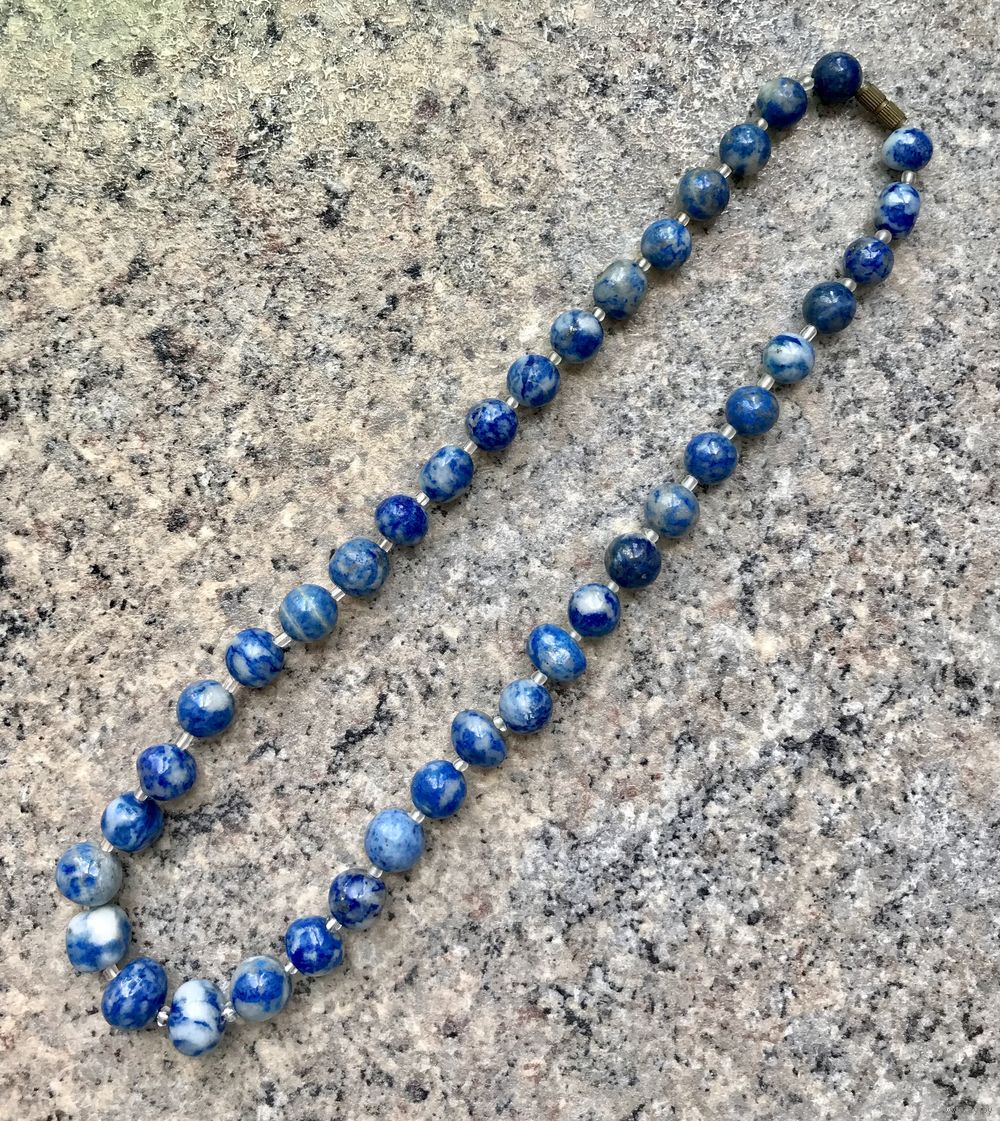 Винтажные бусы из лазурита. Размер бусин от 0,4см. до 1,3см. На нескольких бусинах есть незначительные скольчики. Длина 48см.