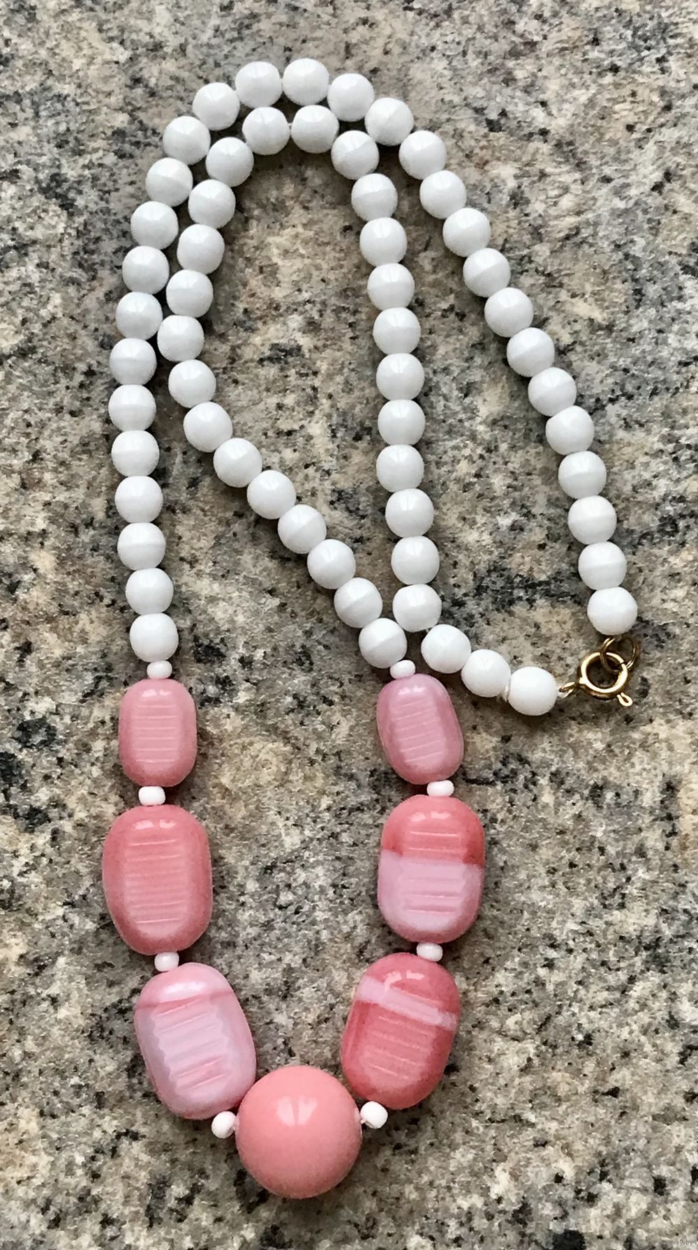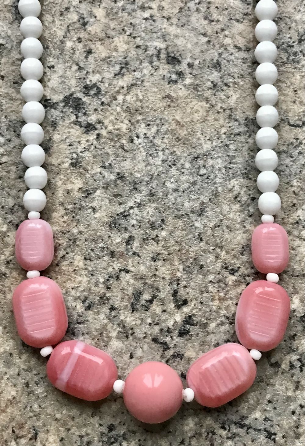 Винтажные бусы из чешского стекла. Круглая бусина из пластика. Длина 48см. Состояние хорошее.