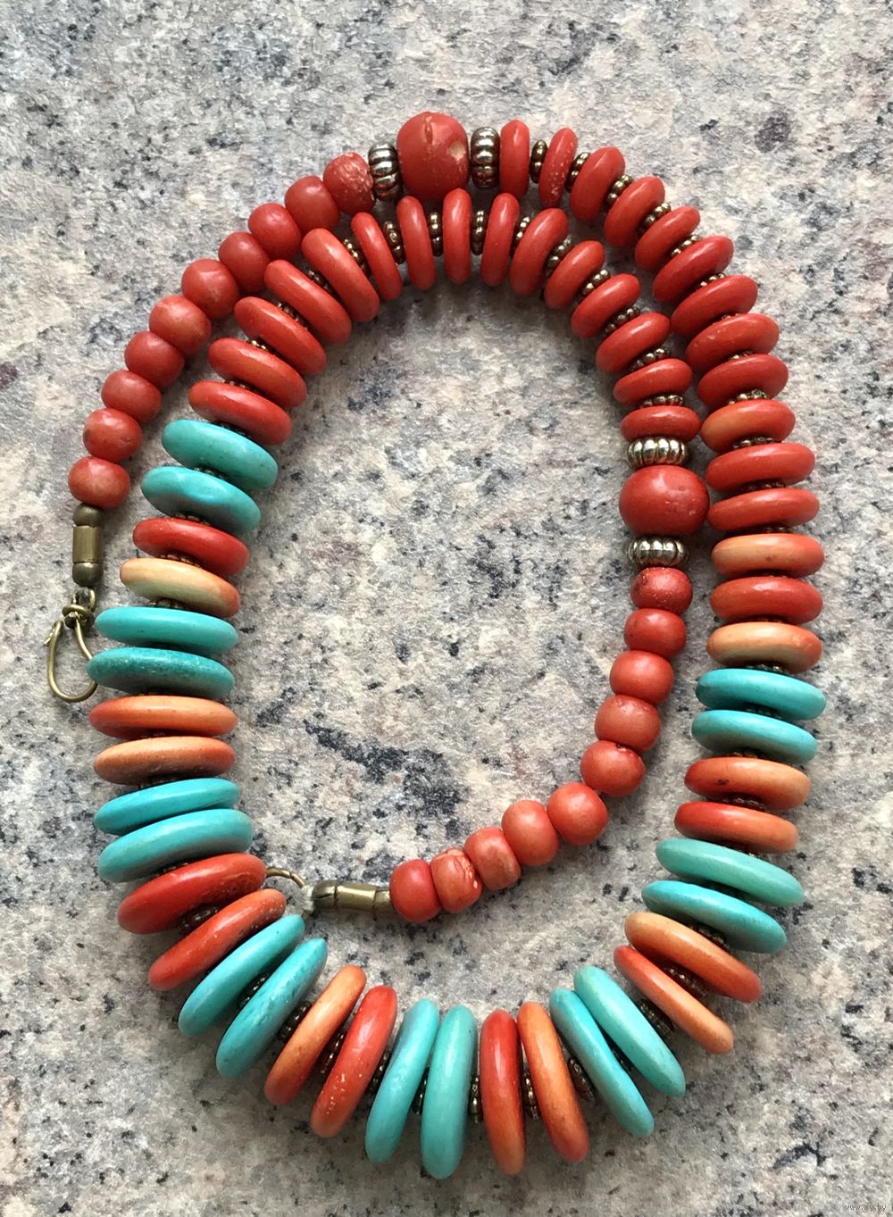 Винтажные бусы скорее всего из тонированной кости, длина 55 см. с застежкой, браслет на резинке в подарок.