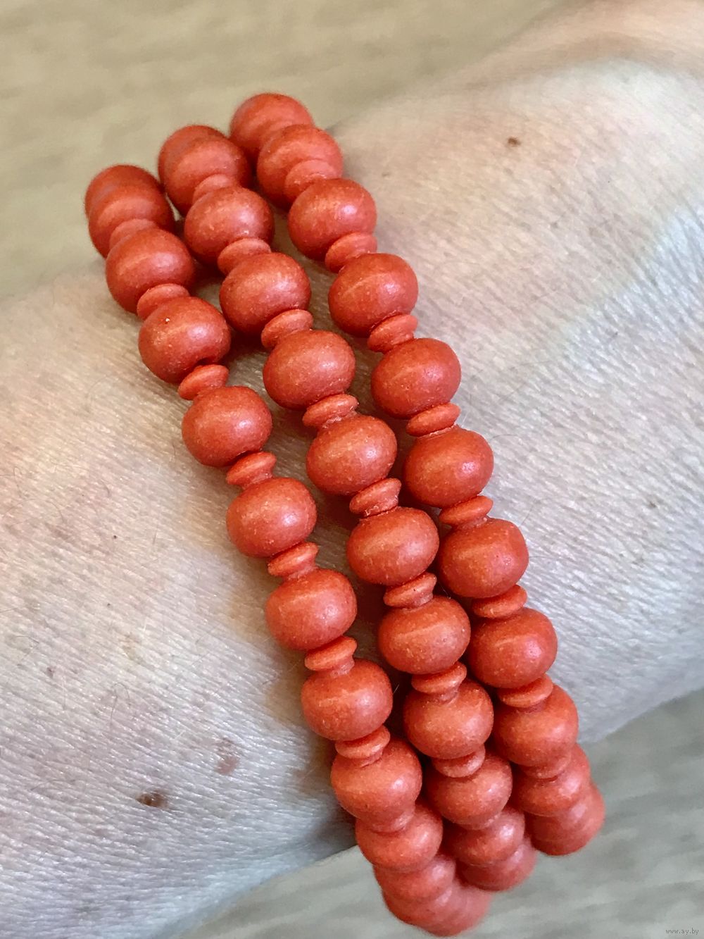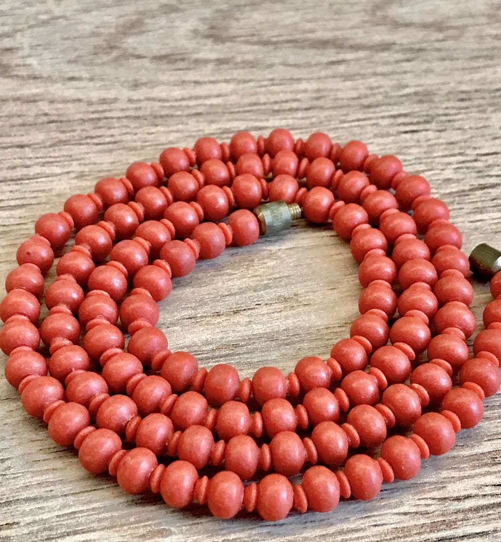 Винтажные бусы из пластика под коралл. Длина 64см., размер бусин 0,5х0,4см. Состояние хорошее.