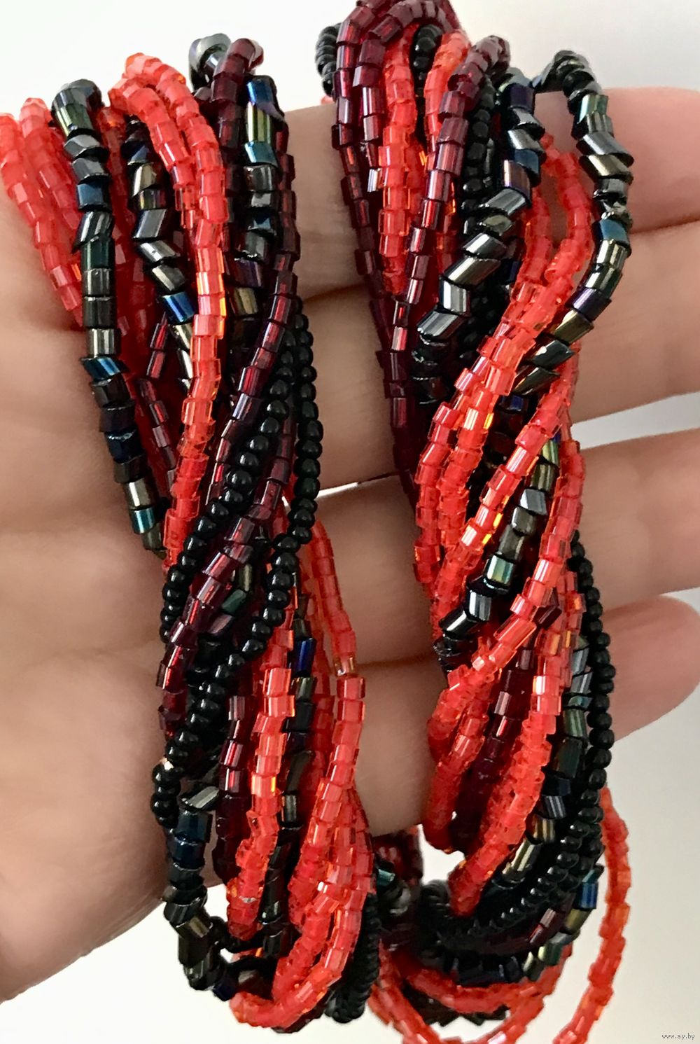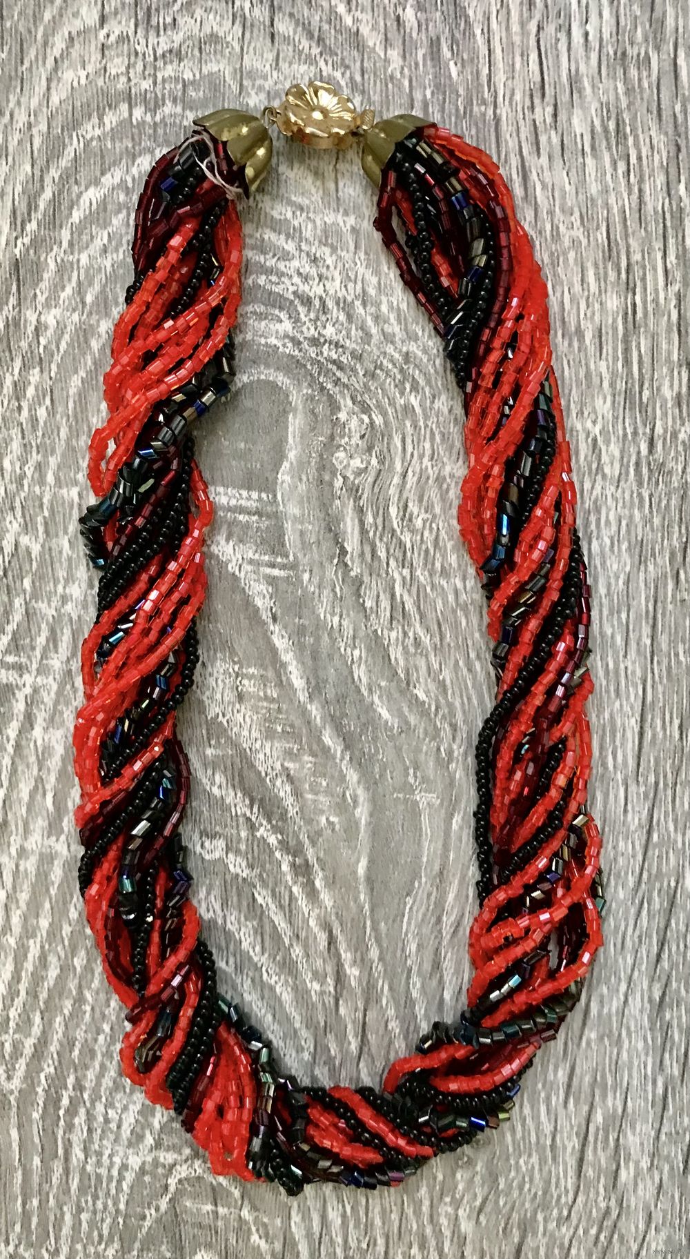 Винтажные бусы из 16-ти ниток с разного вида бисером. На латунных шапочках стерлась позолота. Длина 42см.