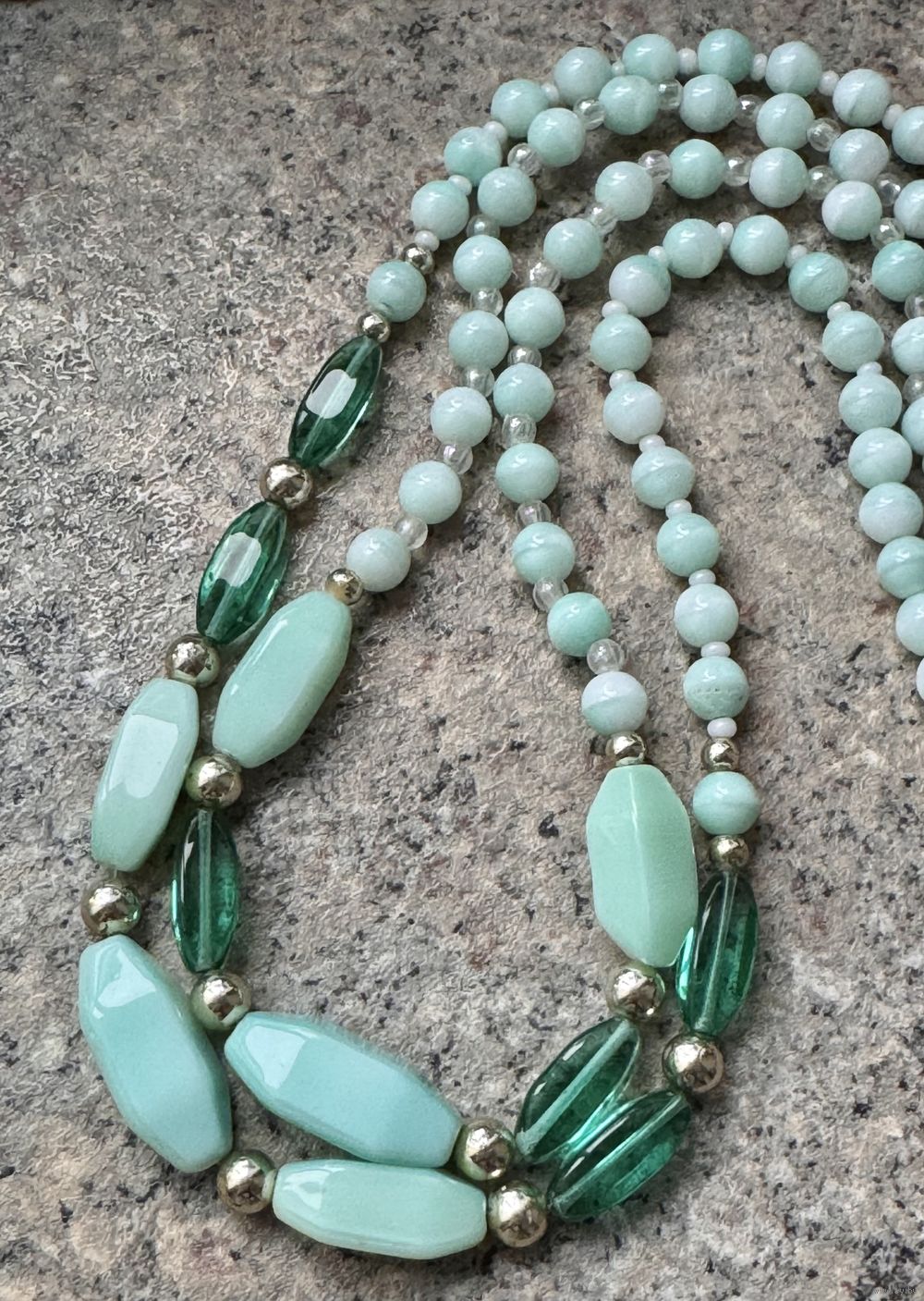 Винтажные бусы из цветного стекла. Длина верхней нити 46см., нижней 50см.+1см. замочек. Возле замка есть связки нити. Этот момент учтён в цене.