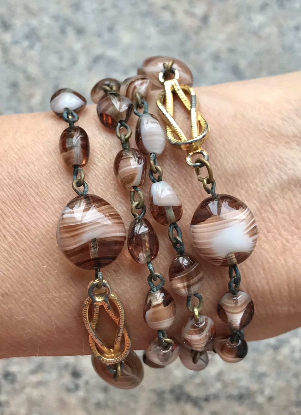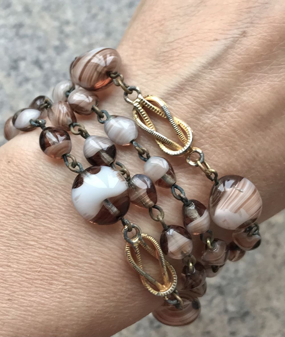 Винтажные чешские бусы из стекла и металла. На металле присутствуют следы окисления (не критично, но учтено в цене). Длина 80см.