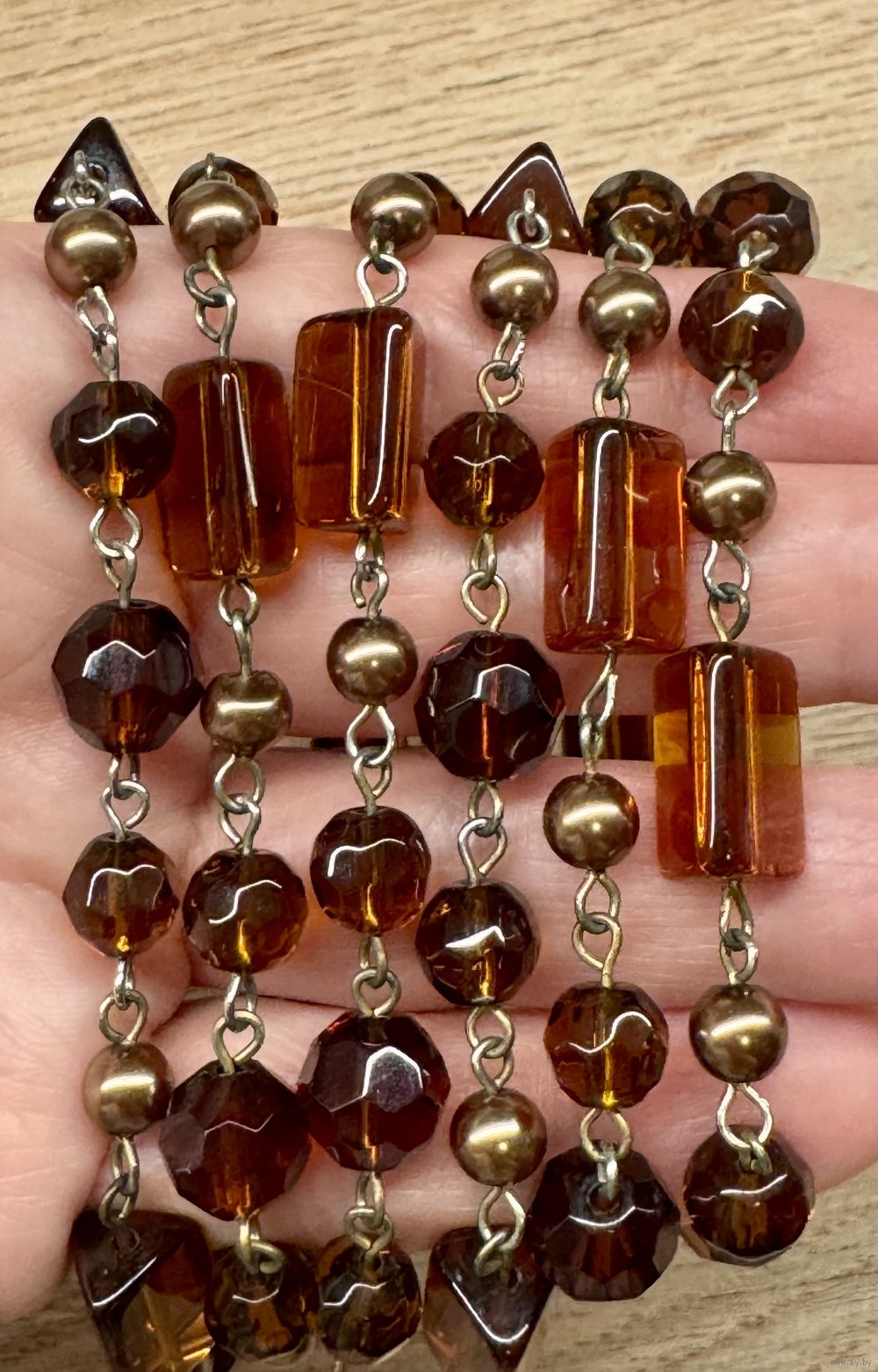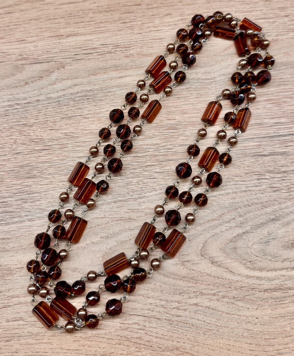 Винтажные бусы из стекла на латунных пинах. Длина 150см., неразъемные. Состояние хорошее.