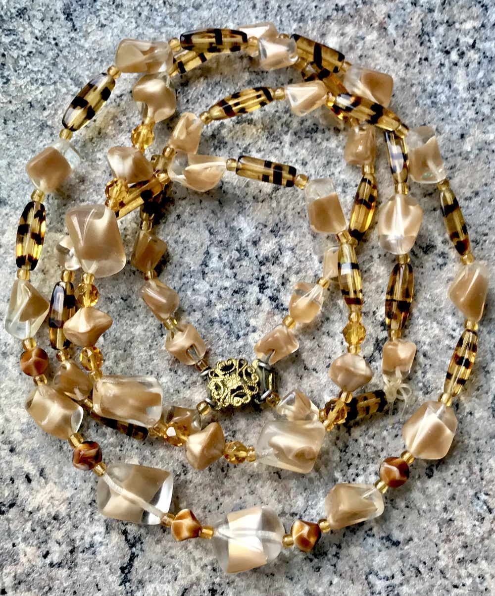 Крупные, эффектные винтажные (1970-е гг.) чешские двухрядные бусы из стекла. Длина 57см. Необходимо перенизать (учтено в цене).