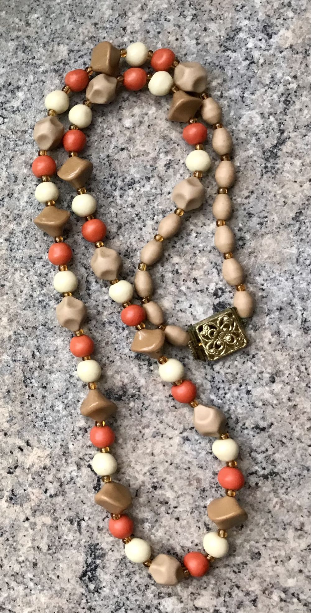 Винтажные бусы из стекла. Нанизаны на леску. Длина 76см.+2см. замочек.