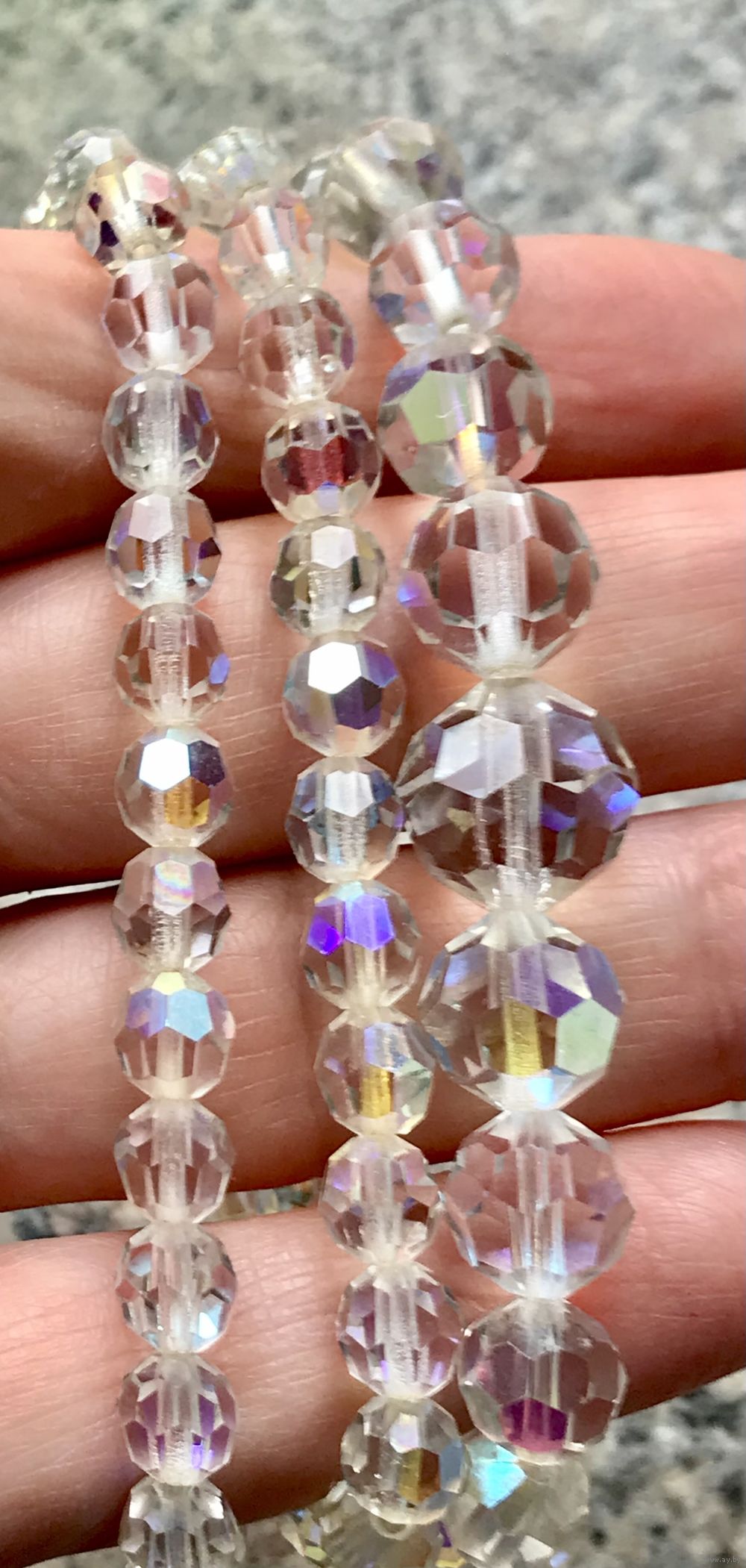 Винтажные бусы из стекла с покрытием AB. Бусины нанизаны на леску. Длина 52см. Состояние хорошее.