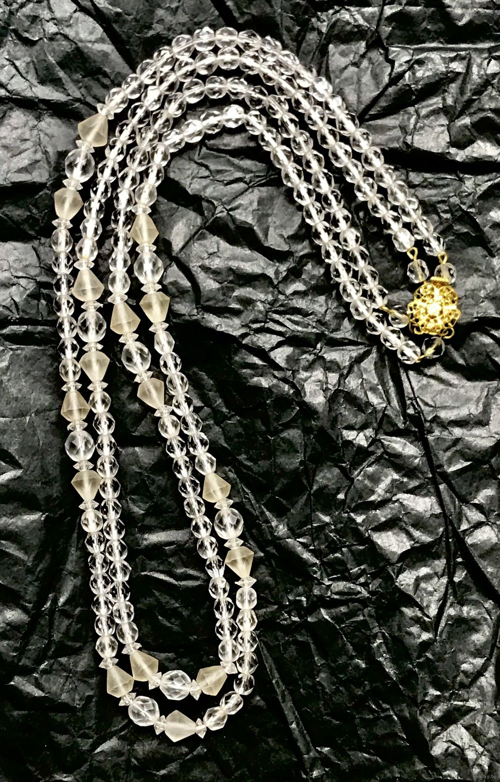 Винтажные двухрядные бусы из чешского стекла двух видов. Длина верхнего ряда 56см., нижнего 60см. Состояние хорошее.