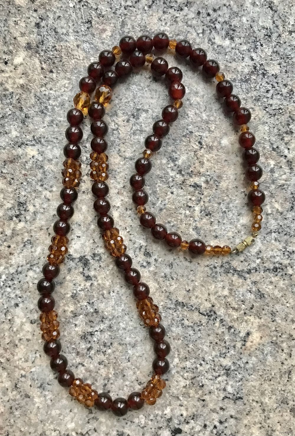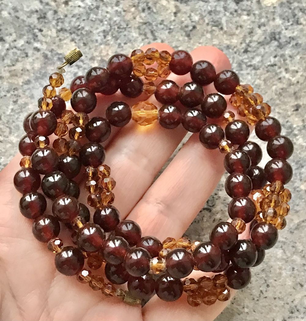 Винтажные бусы из янтаря и стеклянных гранённых бусин. Длина 64см., диаметр янтарной бусины 0,7см. Состояние хорошее.