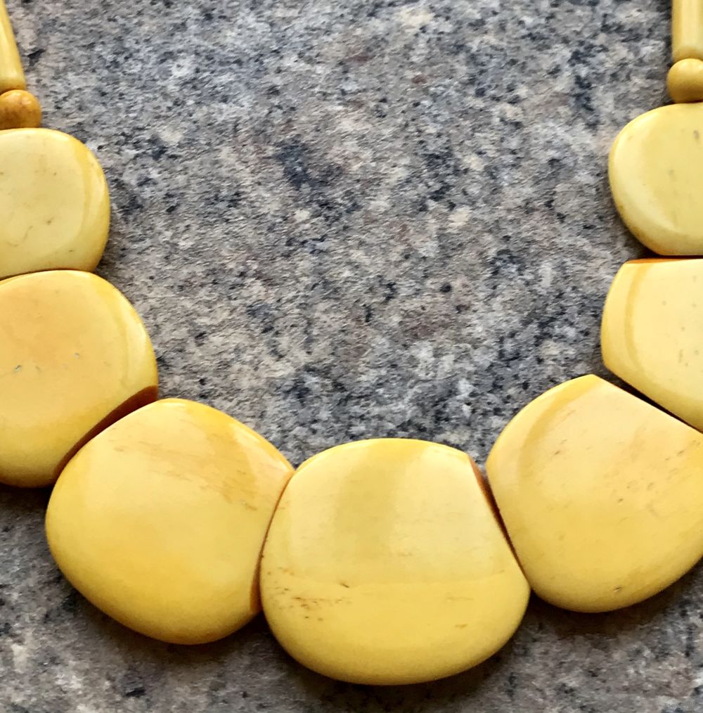 Яркие винтажные бусы из тонированной кости . Длина 48см., состояние хорошее.